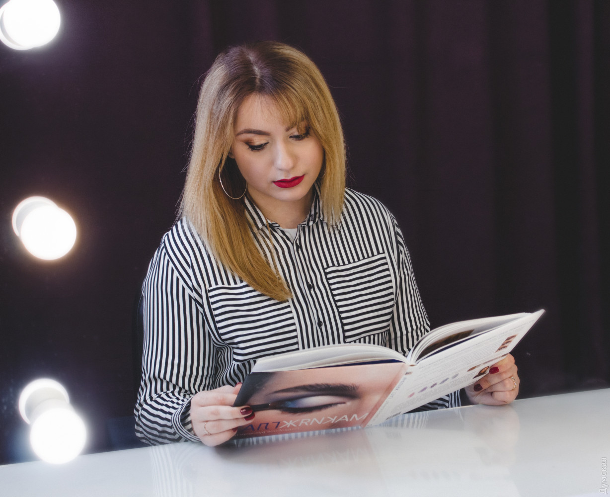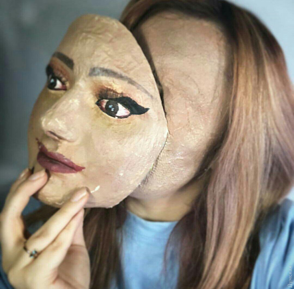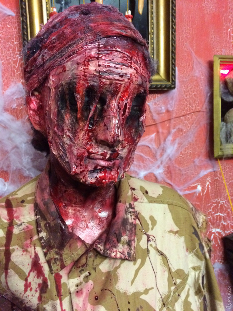В преддверии самого страшного праздника, «Думская» решила написать о тех, для кого Хэллоуин — это не один день в году, а призвание по жизни. Героиня нашего сюжета – мастер студии пластического грима Александра Карпунина – юная девушка, которая способна любую красавицу или красавца превратить в чудовище. Мастерская хоррора расположилась в здании одного из бизнес-центров на Среднефонтанской. Уже издалека понятно, что здесь что-то «не чисто» — к студии ведут стилизованные кровавые следы, а само помещение украшено в лучших традициях ужастика «Байки из склепа». Тут и мертвецы, выглядывающие из-за могильных надгробий, и тарантулы, и скелеты. На входе висит настораживающая надпись: «входите, если посмеете». Но мы не из пугливых — пережили и голые перфомансы, и пенис-арты, и даже вид реконструированной Аркадии, а потому смело переступаем порог. Но вместо «обители зла» попадаем в студию с милейшей атмосферой. Под песни Элвиса Пресли, звучащие из ретро-проигрывателя, знакомимся с обстановкой студии и ее хозяйкой. Саше всего 22 года. По образования она – морской менеджер. В Морскую академию девушка поступила по настоянию родителей, почти все члены ее семьи так или иначе связаны с морем. Но уже на третьем курсе, проходя практику в крюинге и логистической компании, Саша твердо решила, что эта профессия не для нее. «Я поняла, что не хочу на кого-то работать и реализовывать чужие планы. Для меня это чистая трата времени впустую», — рассказывает девушка. Альтернатива была всегда, ведь с самого детства Александра занималась творчеством. В 8 классе она сделала работу по декоративно-прикладному искусству с вышивкой, лепкой из глины и элементами из папье-маше для конкурса имени Тараса Шевченко. Работа получила первое место в Одесской области. А отношения с визажем у нее начались в 12 лет – пока сверстницы еще игрались в куклы, Саша уже старательно выводила стрелки и скульптурировала лицо. А будучи студенткой, Александра поступила в школу актерского мастерства, где среди прочих дисциплин значился киношный грим. Именно это направление, а точнее хоррор-грим полностью захватило девушку. За четыре года, которые она трудится в этой сфере, Саша создала около сотни страшных образов, а не так давно основала собственную студию, где проводит авторские мастер-классы. КРОВЬ ИЗ КРАСИТЕЛЕЙ И ГЛАЗУРИ Сотрудники бизнес-центра уже привыкли к соседству со студией Александры и даже перестали шарахаться при виде выходящих отсюда зомби или страшных клоунов. Для того чтобы добиться нужного эффекта и сделать своих клиентов как можно более страшными, на вооружении у Александры множество специальных инструментов и флакончиков. Центральное место среди них, конечно, отведено бутафорской крови, без которой в пластическом гриме как без рук. Делается кровь из красителей и глазури, а на вкус – сладкая. Еще один маст-хев киношного гримера – латекс. «Некоторые ютуб-блогеры предлагают заменять его клеем ПВА. Когда я такое вижу, я прихожу в ужас, ведь наносить такой клей на лицо категорически запрещено, это, конечно, дешево, но очень опасно. Когда мне нужно много латексных накладок, я делаю их из желатина с глицерином. Это очень удешевляет работу и к тому же такая смесь полезна для кожи», — делится секретами Саша. Также в арсенале гримера множество кистей, которые проходят обязат