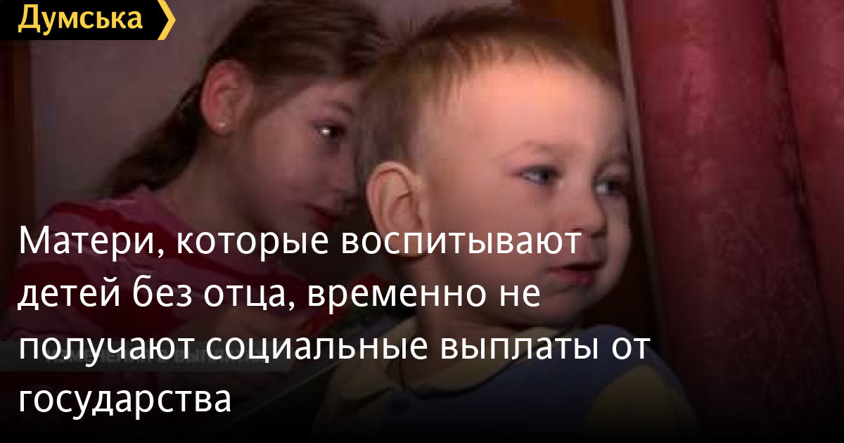 Матери, которые воспитывают детей без отца, временно не получают социальные выплаты от государстваМатери, которые воспитывают детей без отца, временно не получают социальные выплаты от государства. Порядок начисления компенсаций изменился и сотни семей пока не понимают, как и когда получать положенные деньги. СМЕРТЬ РОССИЙСКИМ ОККУПАНТАМ! Заметили ошибку? Выделяйте слова с ошибкой и нажимайте control-enter Думская ТВ. Сюжеты: