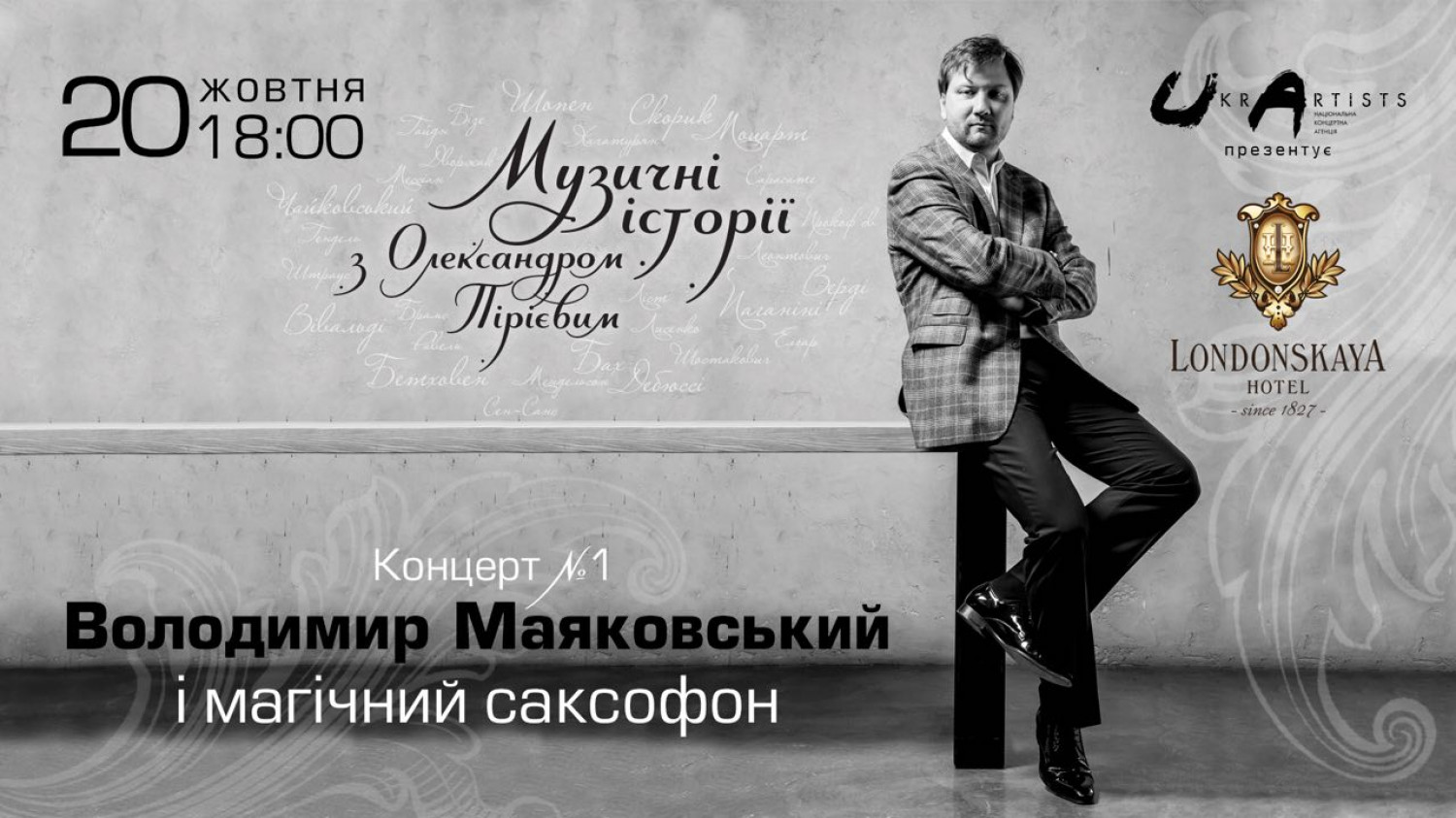 Маяковский и магический саксофон: Александр Пириев готовится провести в Одессе первый концерт из цикла «Музыкальные истории» (на правах рекламы)Роскошь и Черное море — все это объединяет как одесситов, так и легендарных гостей города. Одним из таких гостей был Владимир Маяковский, который останавливался в гостинице «Лондонская» во время своего визита в Одессу. Размышляя об этом, Александр Пириев — известный музыкант и продюсер, включил революционного Владимира Маяковского в свой проект «Музыкальные истории». Именно ему, Маяковскому, посвящен концерт №1. «Маяковский и магический саксофон» — это уникальные факты, тайны, истории из жизни и создания всемирно известных произведений под аккомпанемент Киевского квартета саксофонистов и знаменитого перкуссиониста Сергея Хмелева. Недавно Александр Пириев дал интервью «Думской ТВ», раскрывая тонкости необычного салонного формата: Сам концерт будет проходить в воскресенье, 20 октября, в 18:00 в гостинице «Лондонская» Билеты можно приобрести по ссылке. СМЕРТЬ РОСІЙСЬКИМ ОКУПАНТАМ! Помітили помилку? Виділяйте слова з помилкою та натискайте control-enter |