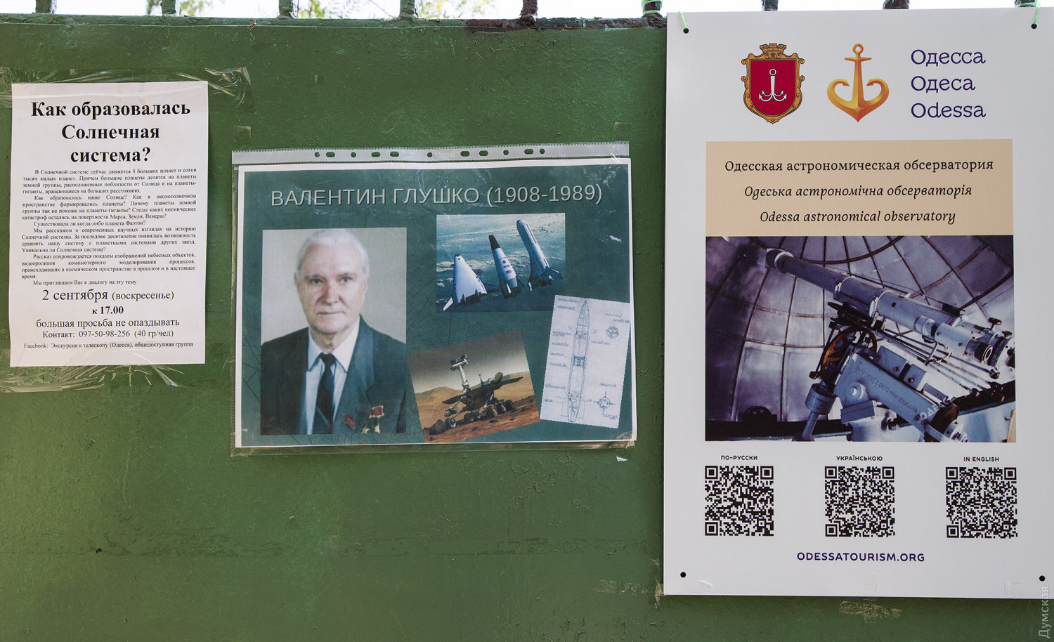 «Одесской космонавтике мы обязаны Валентину Петрович Глушко, ключевому специалисту в области ракетной техники, — говорит старший научный сотрудник обсерватории и директор планетария Михаил Рябов. — И хоть как мировое светило он состоялся уже вне нашего города, именно его руками в 1924-м году была основана народная обсерватория, работающая до сих пор. Его разработки в вопросах постоянно действующих внеземных баз актуальны до сих пор. И совершенно естественной выглядит идея назвать нашу обсерваторию его именем»