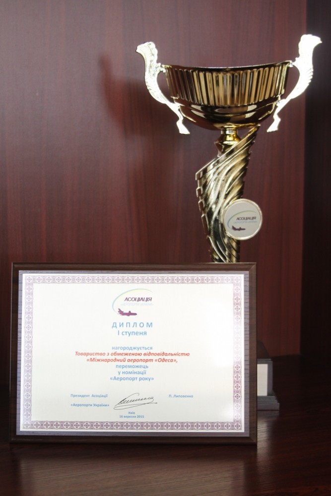Ассоциация «Аэропорты Украины» гражданской авиации наградила Международный аэропорт «Одесса» дипломом первой степени в номинации «Аэропорт года». Как сообщает пресс-служба аэропорта, награждение состоялось в рамках международного форума «Аэроконгресс – 2015», который на прошлой неделе прошел в Киеве. В форуме приняли участие около 150 представителей предприятий и организаций, работающих в авиационной отрасли страны.