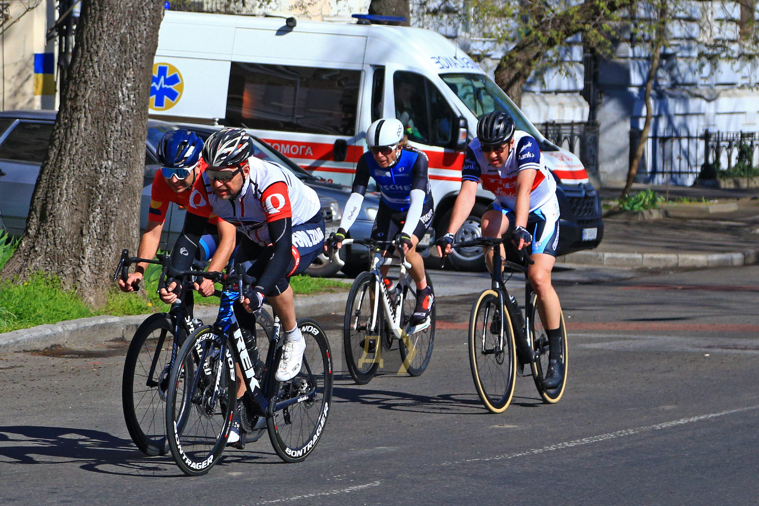 В Одесі стартував сезон спортивних велозмагань — 6 квітня на одній з ділянок київської траси проводилися індивідуальні перегони, а 7 числа стартували щорічні групові велоперегони «Меморіал Уточкіна». Як повідомляє кореспондент «Думської», понад тридцять спортсменів змагалися в трьох вікових групах на різних дистанціях. Гонщики від 19 до 39 і від 40 до 59 років мали подолати 45 кілометрів, а ветерани від шістдесяти років і вище — 30 км. Перегони проводилися в парку Шевченка зі стартом і фінішем на Маразліївській вулиці. Треба сказати, що боротьба була гострою, але фінішну лінію майже одночасно подолали одразу двоє спортсменів — Олексій Корецький (19-39) та Андрій Гладкий (40-59) стали переможцями кожен у своїй віковій категорії. Серед ветеранів переміг Олег Іванков, а найстаршому учаснику змагань — Миколі Вахромєєву, скоро «стукне» сімдесят. Незважаючи на гарну погоду, не обійшлося без тривожних моментів — двоє спортсменів упали, ще кілька велосипедів дістали проколи гуми, але, на щастя, серйозних травм не було. Переможець перегонів у молодшій віковій категорії розповів, що фінішний спурт не вдався. «На фінішній прямій я побачив, що поруч зі мною їде спортсмен набагато старший за мене, тому змагатися з ним - хто перший перетне умовну стрічку, не було сенсу. Упродовж усієї гонки ми з ним працювали в парі, але він віддав більше сил, тому я пропустив його вперед. Ми обидва стали переможцями у своїх групах», — зізнався Олексій Корецький. Спортсмени також підкреслили, що не святкуватимуть перемогу в цих змаганнях із шампанським так, як робили це раніше — війна наклала свій відбиток навіть на цю традицію. Трійки призерів змагань: молодша група (19-39) — Олексій Корецький, Микита Кошелєв, Юрій Андерсон. Середня (40 - 59) - Андрій Гладкий, Олександр Сітченко, Олег Бімбаш. Ветерани — Олег Іванков, Григорій Савенко, Микола Вахромєєв. Фото Сергія Смоленцева Помітили помилку? Виділяйте слова з помилкою та натискайте control-enter |