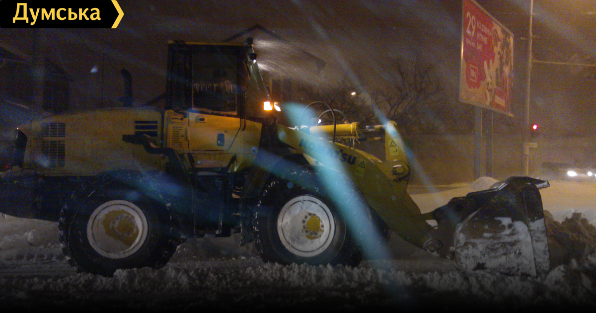 Продолжает работать снегоуборочная техника в направлении аэропорта и по улицам Щорса, Мельницкой, Академика Филатова, площади Деревянко, Паустовского и др.