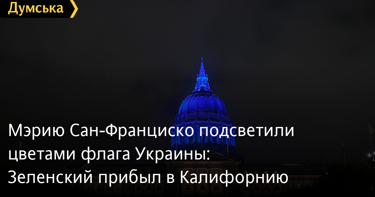 Мэрию Сан-Франциско подсветили цветами флага Украины: Зеленский прибыл в КалифорниюПрезидент Владимир Зеленский прибыл в Калифорнию в рамках рабочего визита в США. Об этом в Facebook сообщает Офис президента. В честь приезда украинской делегации здание мэрии Сан-Франциско подсветили цветами украинского флага. Отметим, это первый визит президента Украины в Калифорнию за всю историю независимости нашего государства. Фото: ОП СМЕРТЬ РОССИЙСКИМ ОККУПАНТАМ! Заметили ошибку? Выделяйте слова с ошибкой и нажимайте control-enter |