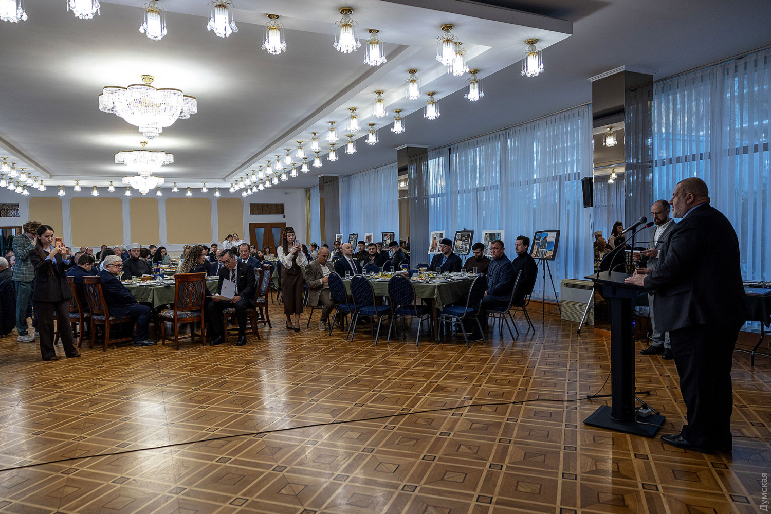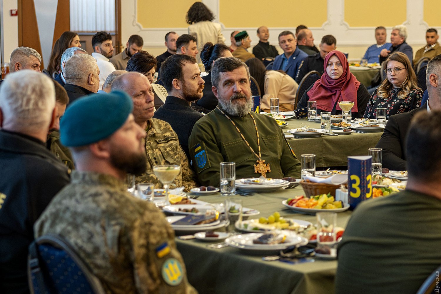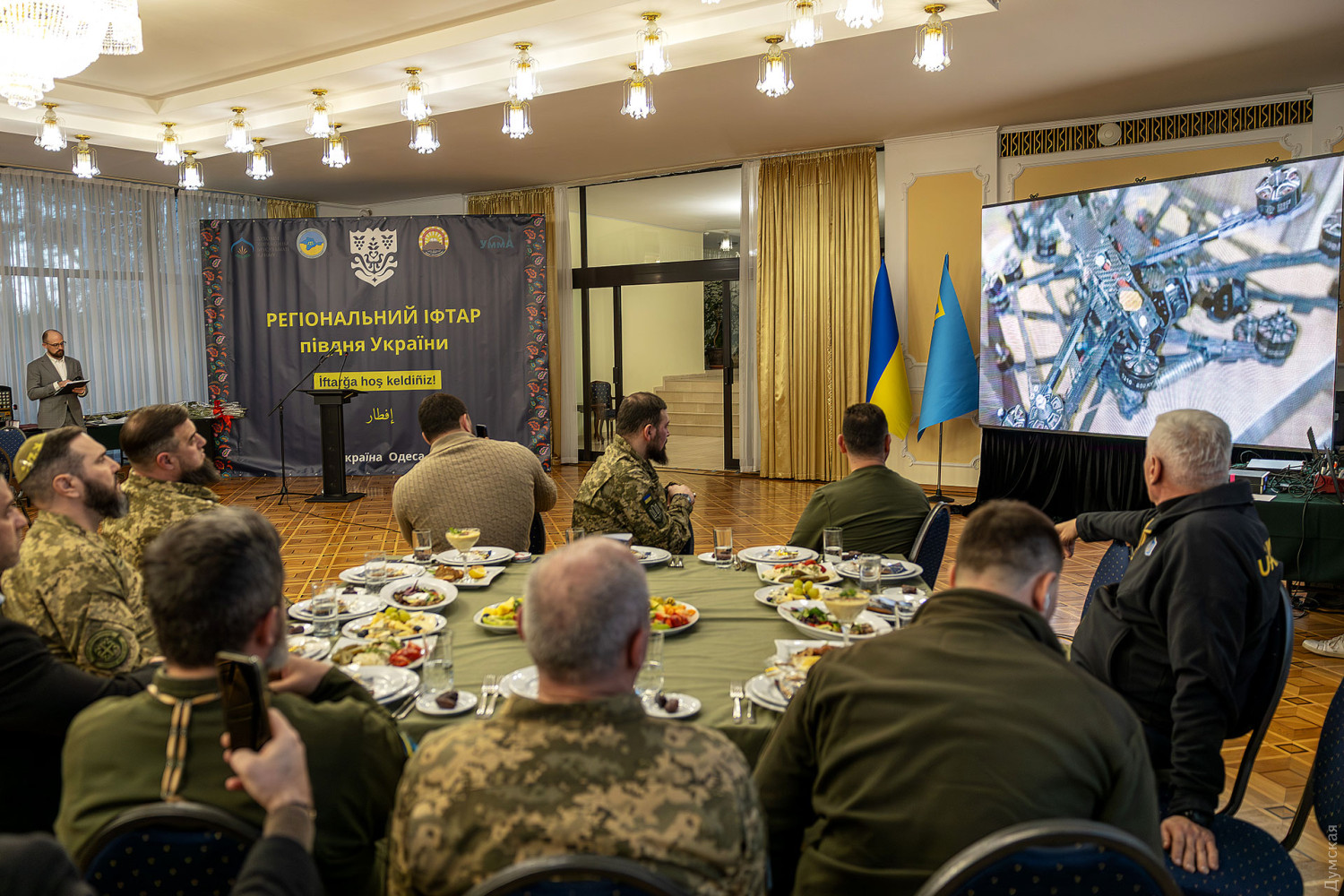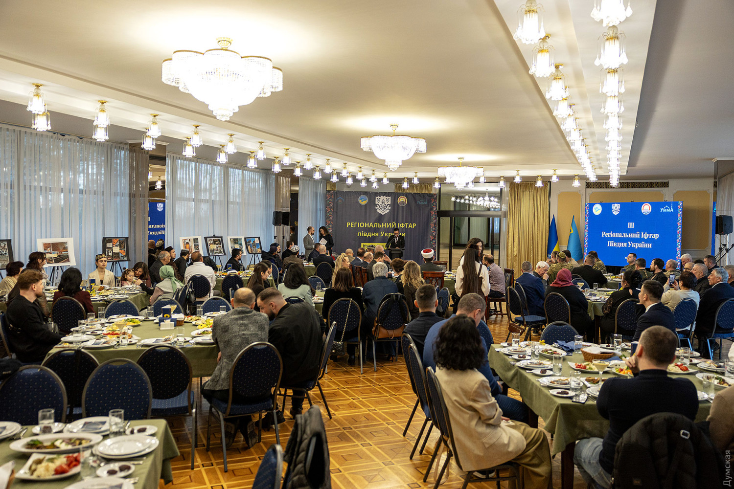 Третий региональный ифтар — вечерняя трапеза в священный для мусульман месяц Рамадан — прошел вчера вечером в Доме приемов Одесского областного совета. Как передает корреспондент «Думской», вечер начался с минуты молчания в память о погибших защитниках и исполнения гимнов Украины и крымскотатарского народа. Здесь собрались военные, волонтеры, активисты, представители разных общин, церквей, мечетей и власти. Муфтий Духовного управления мусульман Украины «Умма» Мурат Сулейманов отметил, что сила украинского общества заключается в его многообразии и способности к диалогу. «Ифтар – это не просто вечерняя трапеза, а символ единства, взаимного уважения и поддержки, особенно во время войны, — рассказал муфтий. — Украина объединяет представителей разных этносов и конфессий, и именно в этом наша сила. Если мы уважаем друг друга и поддерживаем, ни один враг не сможет нас преодолеть». Глава Меджлиса крымскотатарского народа Рефат Чубаров уверен, что проведение ифтара в Одессе уже стало важной традицией и символом единства разных общин. «Сегодня крымскотатарский народ и сотни тысяч людей других национальностей, живущих в оккупированном Крыму, ждут освобождения. Мы все едины в защите своего государства и являемся единственной украинской политической нацией», — сказал он. По словам депутата Одесского областного совета, главы общественной организации «Крымские татары Одесчины» Февзи Мамутова, третье проведение ифтара свидетельствует о том, что мероприятие стало устойчивой традицией. «Первый ифтар был случайностью, второй закономерностью, а третий уже можно назвать традицией, — отметил Февзи Мамутов. — На этом мероприятии собрались представители разных конфессий и национальностей, военные, общественные деятели и власть. Именно такие события помогают консолидировать общество и делают нас более сильной украинской политической нацией». Генеральный консул Турции в Одессе Мухиттин Челик подчеркнул, что Рамадан является временем духовного очищения, милосердия и братства, а ифтар символизирует объединение людей разных культур и религий. «Ифтар объединяет людей разных вероисповеданий и культур за одним столом и символизирует толерантность и взаимное уважение», — отметил дипломат, добавив, что крымские татары играют важную роль как мост между Украиной и Турцией. Во время мероприятия представители военных администраций и городского совета вместе с духовенством вручили награды военным, общественным деятелям и активистам. Также были вручены религиозные награды и благодарности за вклад в развитие мусульманской общины Украины и поддержку межконфессионального диалога. Гости мероприятия также могли ознакомиться с выставкой фотографий одесских мечетей, подготовленной специально к ифтару. Организаторы надеются, что проведение региональных ифтаров в Одессе станет постоянной традицией и будет способствовать укреплению диалога между общинами и поддержке украинского общества во время войны. СМЕРТЬ РОССИЙСКИМ ОККУПАНТАМ! Заметили ошибку? Выделяйте слова с ошибкой и нажимайте control-enter |