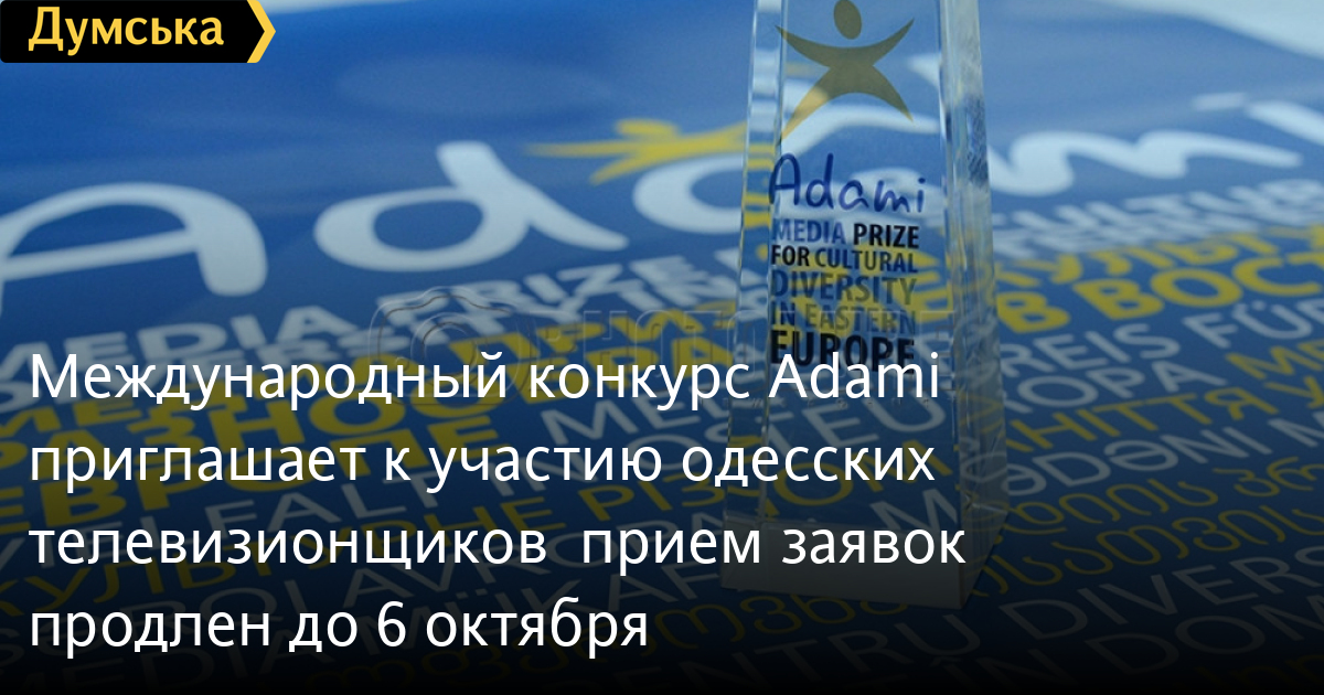 Международный конкурс Adami приглашает к участию одесских телевизионщиков – прием заявок продлен до 6 октябряУ специалистов в области медиа появилась возможность представить свои аудиовизуальные работы на международной арене. Подача заявок на международный медиа конкурс ADAMI продлится до 1 октября. Для участников предусмотрено 6 номинаций для фильмов, программ и онлайн проектов, которые касаются тем миграции, религиозного и культурного разнообразия. Победителей ждут денежные призы — по 2000 евро в каждой номинации. Призеров объявят уже в ноябре на церемонии награждения в Кишиневе. «Кроме основных шести призов, у нас есть три стипендии — это месяц проживания и стажировки на трех каналах. Участие в конкурсе бесплатное», — отмечает координатор проекта ADAMI Нелли Мжаванадзе. К участию в конкурсе приглашаются телекомпании, режиссеры, журналисты и другие специалисты в области медиа из шести стран Восточного партнерства ЕС - Армении, Азербайджана, Беларуси, Грузии, Молдовы и Украины. На конкурс можно присылать как сериалы, документальные и художественные фильмы, так и анимацию, ток-шоу, аналитические программы — главное тематика. «Такой конкурс это уникальная платформа, как для профессионала, так и для новичка», – отмечает Нелли Мжаванадзе. Подать заявку можно на сайте конкурса. СМЕРТЬ РОССИЙСКИМ ОККУПАНТАМ! Заметили ошибку? Выделяйте слова с ошибкой и нажимайте control-enter |