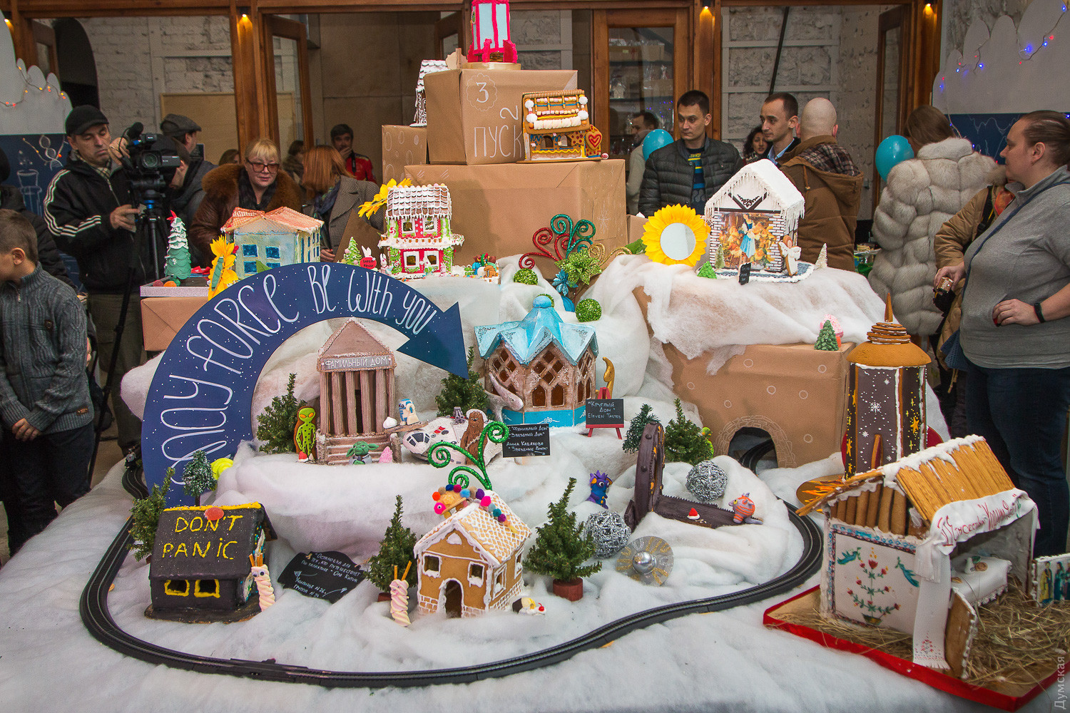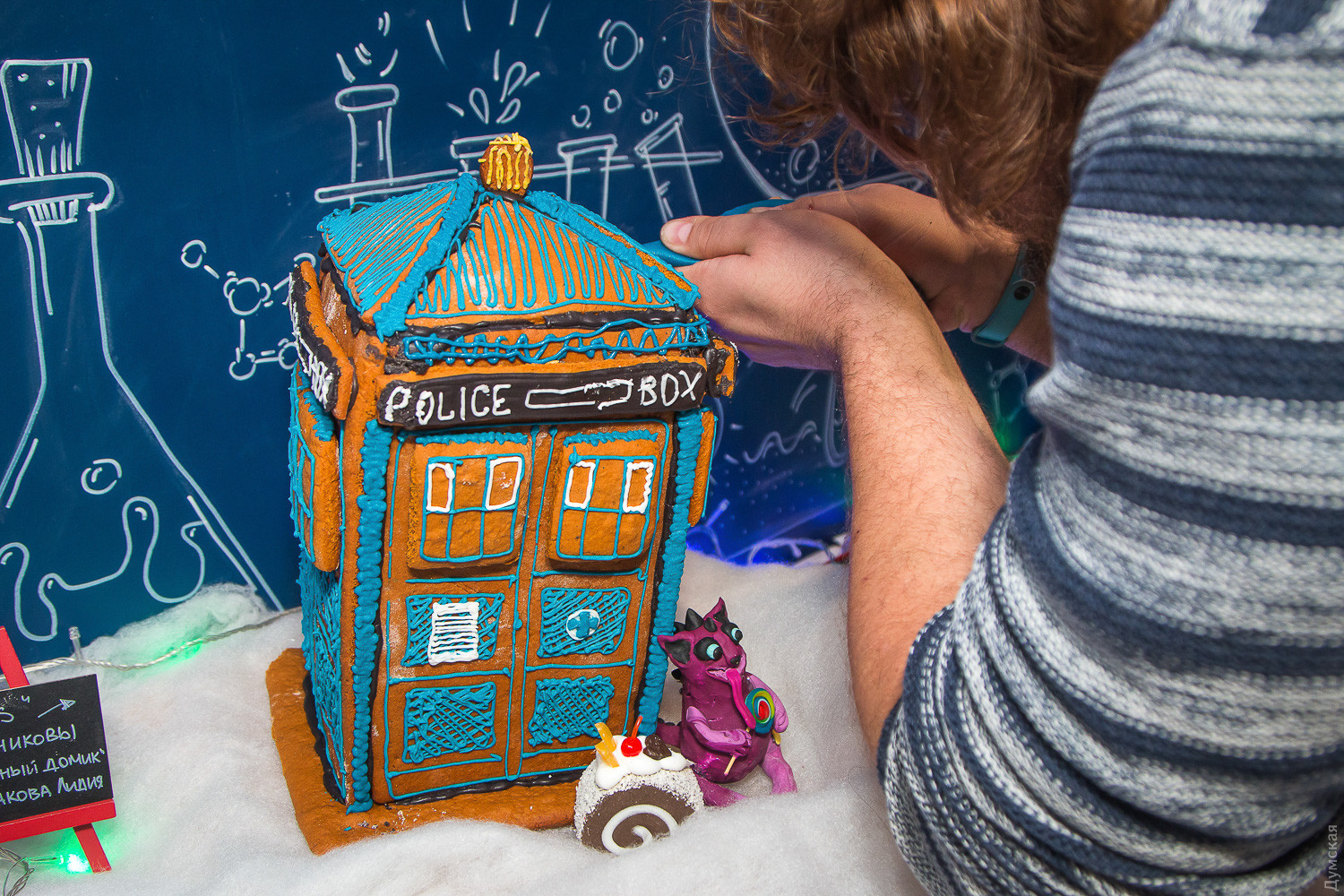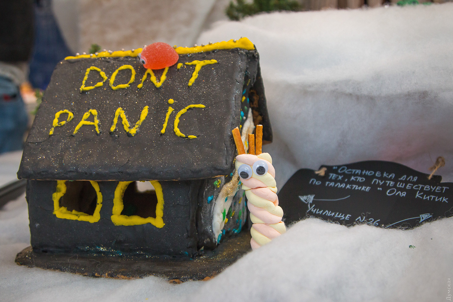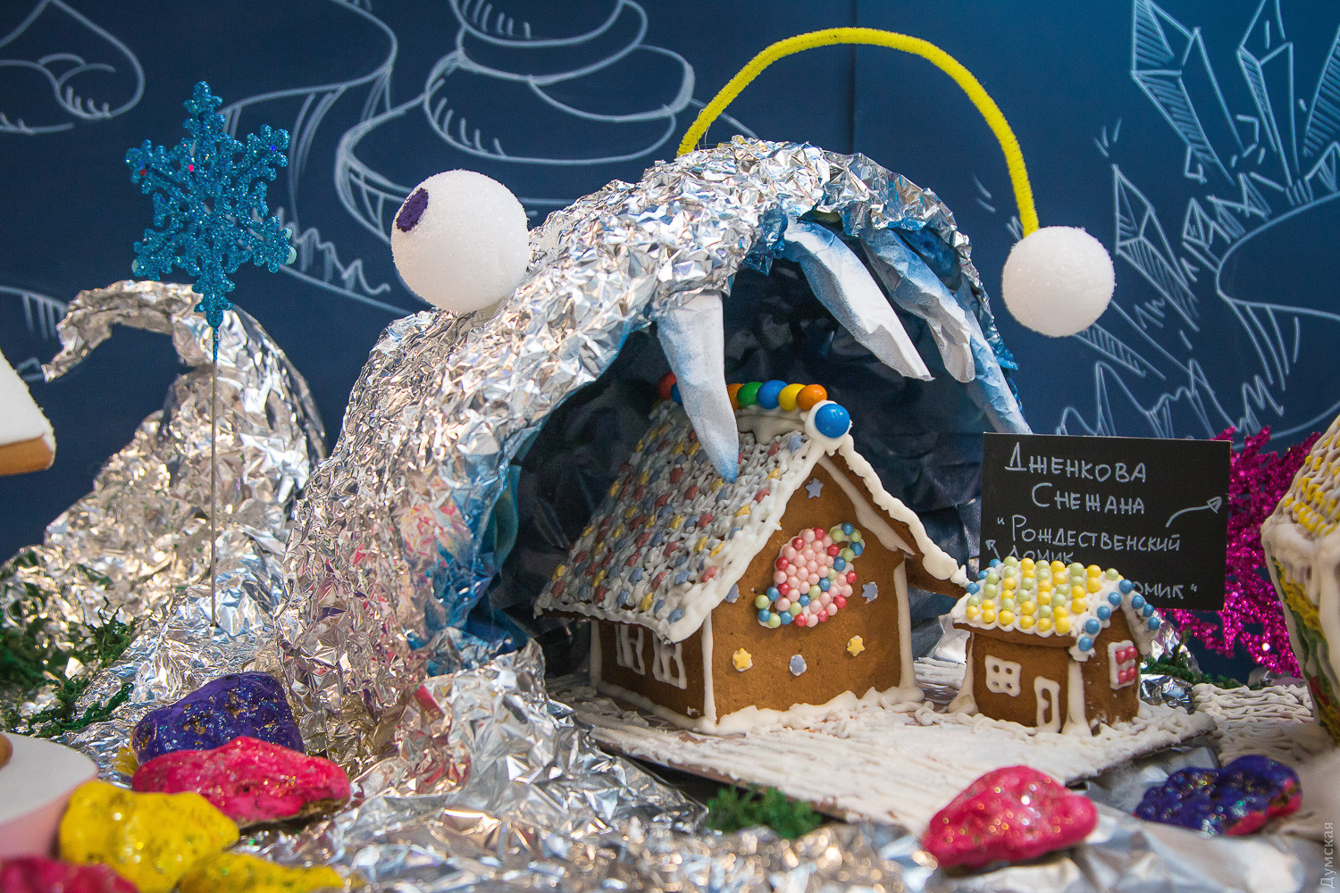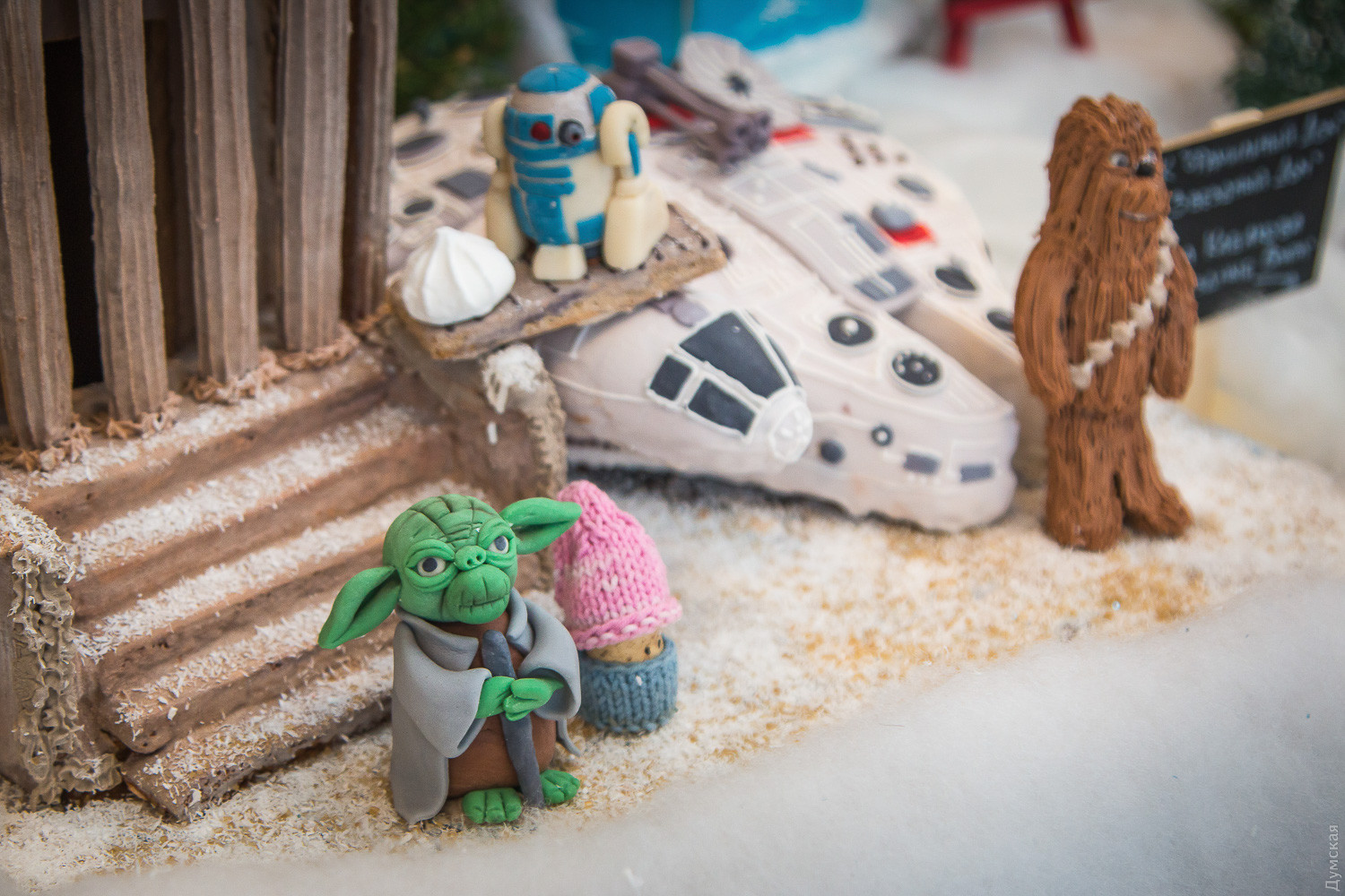 Первая межгалактическая выставка пряничных домиков открылась сегодня в стенах социального ресторана 4City на Канатной, 27. На выставке представлено больше 50 сладких композиций. «Выставка проходит пятый год, и в этот раз мы решили замахнутся на космическое пространство, потому что это позволяет людям создавать очень интересные композиции», — рассказала «Думской» соорганизатор выставки, журналист Юлия Сущенко. И действительно, тривиальных пряничных домиков здесь почти нет, зато можно увидеть гигантского Чабана, окруженного инопланетянами. Его создали представители туристического комплекса «Фрумушика-Нова». Героев киноэпопеи «Звездные войны» интегрировала в свой стиль одна из строительных компаний Одессы. Целую сладкую деревню создала с командой депутат городского совета Лилия Леонидова. А учащиеся Одесского высшего профессионального училища морского туристического сервиса построили целую модель Солнечной системы. «Домики мы делали командой из 15 человек, а Солнце и планеты собирали втроем. Потратили неделю, но оно того стоило», — рассказала студентка Анна Кирвас. Самому младшему кондитеру-архитектору всего шесть лет. Семья Ярослава Носенко принимает участие в пряничной выставке уже третий год подряд, и мальчик решил на этот раз построить сладкий домик самостоятельно. Всей семьей делали композицию одесситы Ситниковы. По словам главы семейства Кирилла, на создание полицейской будки по мотивам легендарного британского сериала «Доктор Кто» они потратили всего один день. Правда, последние штрихи мужчина наводил специальным сладким кремом прямо на выставке. «Все сделано нашими руками, это очень интересный и увлекательный процесс, который объединяет всю семью», — поделился с «Думской» Кирилл. По традиции выставка носит благотворительный характер. Как рассказала «Думской» организатор Наталья Василенко, пряничные домики будут проданы на благотворительном аукционе, средства от которого пойдут на лечение пятилетнего одессита Пети Попаза. Мальчик сейчас находится в Минске на очередном, седьмом, курсе химиотерапии. Выставка продлится до 25 декабря. Автор — Александр Гиманов СМЕРТЬ РОСІЙСЬКИМ ОКУПАНТАМ! ![]() Солнечная система от учащихся Одесского высшего профессионального училища морского туристического сервиса Помітили помилку? Виділяйте слова з помилкою та натискайте control-enter