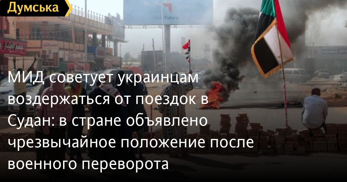 МИД советует украинцам воздержаться от поездок в Судан: в стране объявлено чрезвычайное положение после военного переворотаВоздержаться от поездок в Судан рекомендует министерство иностранных дел Украины гражданам. Об этом в Twitter сообщил пресс-секретарь МИД Олег Николенко. «Внимательно следим за развитием ситуации в Хартуме. Рекомендуем украинцам пока воздержаться от поездок в Судан, а тем, кто находится в стране, избегать мест массового скопления людей, оставаться в безопасном месте», — говорится в сообщении. Те, кто сейчас находятся в стране, могут обратиться за помощью на горячую линию посольства Украины в Египте: +20 100 00 396 48. По данным Al Jazeera, в Судане объявлено чрезвычайное положение после того, как военные спецподразделения совершили переворот в стране. Сообщается, что военные Судана поместили премьер-министра Абдаллу Хамдока под домашний арест после того, как перевезли его в неизвестное место за отказ поддержать переворот. Председатель правящего органа Судана генерал Абдель Фаттах аль-Бурхан объявил о роспуске переходного правительства и суверенного совета. Фото: Al Jazeera СМЕРТЬ РОССИЙСКИМ ОККУПАНТАМ! Заметили ошибку? Выделяйте слова с ошибкой и нажимайте control-enter Новости по этой теме: 12 января 2022: Харьковские станции метро ожидает масштабная проверка: в вестибюле подземки на площади Конституции рухнул потолок (фото) 8 января 2022: В Одессе из офиса фирмы выкрали сейф с внушительной суммой денег, золотом и пистолетом 27 декабря 2021: В лесополосе под Киевом нашли тело главврача из Ровенской области: по подозрению в убийстве задержаны таксист с приятелем 23 декабря 2021: В Киеве задержали подозреваемых мошенников, которые обманывали на свиданиях мужчин ради денег |