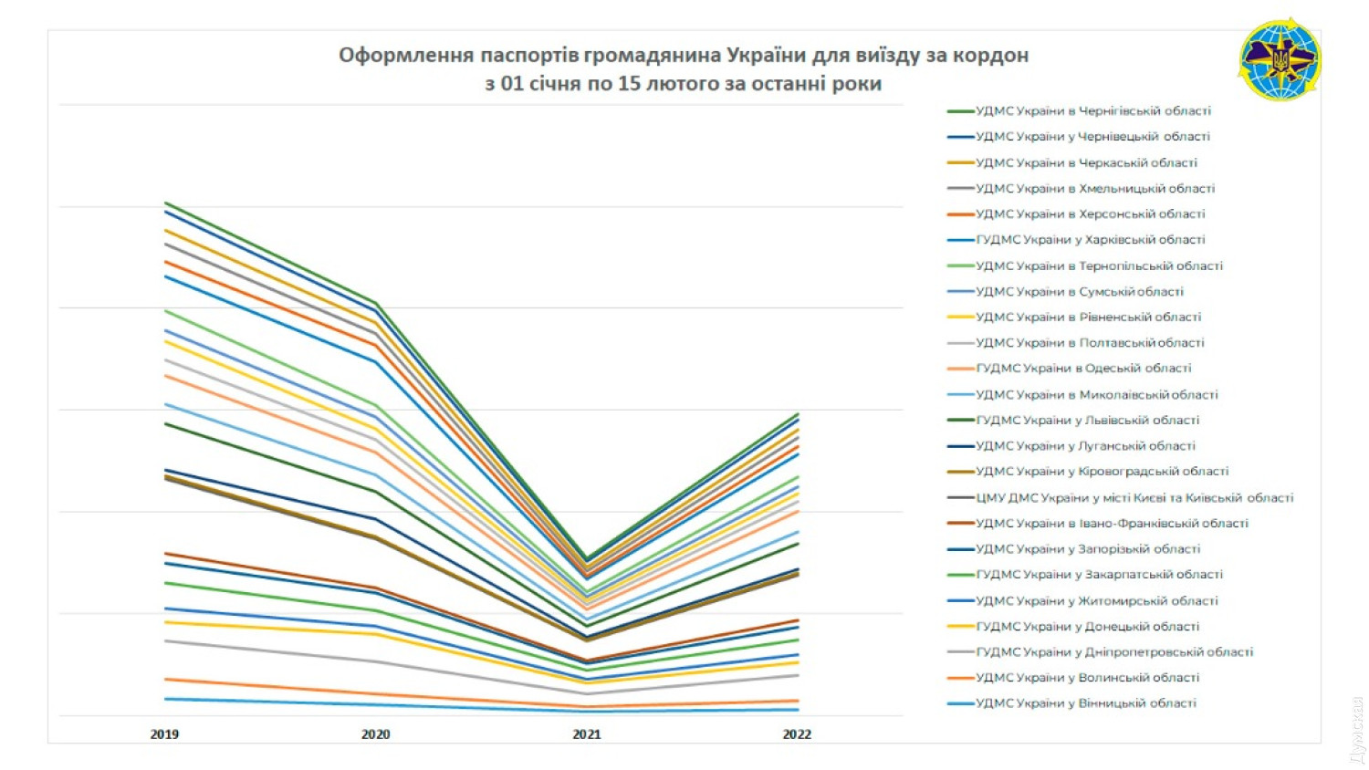 Ажиотажа по оформлению паспортов гражданина Украины для выезда за границу нет. Об этом сообщили в Государственной миграционной службе Украины. В ГМСУ проанализировали показатели количества оформленных загранпаспортов в период с 1 января по 15 февраля 2022 года, а также аналогичные периоды 2019, 2020 и 2021 годов. «Количество оформленных с начала 2022 года документов даже меньше, чем в период до пандемии коронавируса COVID-19 в Украине», — сообщают в миграционной службе. Так, в период с 1 января по 15 февраля 2022 принято почти 325 тыс. заявлений, что на 98,8% больше, чем в аналогичный период 2021 года. Но в то же время это количество на 15,5% меньше, чем в 2020 году и на 38% меньше, чем в 2019 году. СМЕРТЬ РОСІЙСЬКИМ ОКУПАНТАМ! Помітили помилку? Виділяйте слова з помилкою та натискайте control-enter |