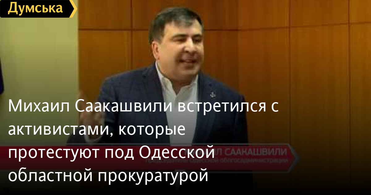 Михаил Саакашвили встретился с активистами, которые протестуют под Одесской областной прокуратуройВ субботу активисты ждали под прокуратурой появления Михаила Саакашвили, который ранее заявил, что поддерживает акцию. На Пушкинскую губернатор так и не пришел, но встретился с общественниками в облгосадминистрации. Порой, градус эмоций зашкаливал СМЕРТЬ РОССИЙСКИМ ОККУПАНТАМ! Заметили ошибку? Выделяйте слова с ошибкой и нажимайте control-enter Думская ТВ. Сюжеты: