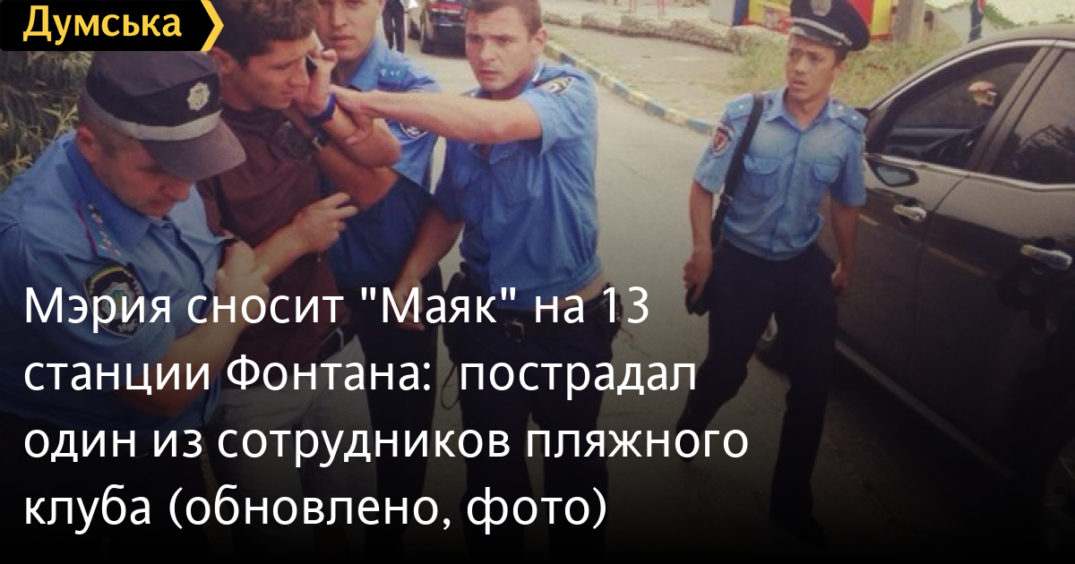 Мэрия сносит «Маяк» на 13 станции Фонтана: пострадал один из сотрудников пляжного клуба (обновлено, фото)Сегодня утром, около 9 часов, в пляжном клубе «Маяк» на 13-й Фонтана появились сотрудники милиции и чиновники, которые заявили, что строение должно быть снесено. На это якобы имеется распоряжение и.о. председателя Киевской райадминистрации Лилии Рогачко и предписание прокуратуры, однако никаких бумаг сотрудникам клуба не предъявили, лишь потребовали собрать вещи и покинуть помещение. Как рассказали сотрудники «Маяка», между ними и милиционерами завязалась потасовка, в результате которой пострадал молодой человек — ему разбили голову. Пострадавшему была оказана медицинская помощь. Сейчас дискотеку сносят сотрудники коммунальных служб. По слухам, демонтаж заведения проводится по просьбе одного авторитетного гражданина, который живет аккурат над «Маяком» и которому по ночам мешала спать громкая музыка. Странно, что никому из не последних граждан, проживающих в окрестностях Аркадии, не пришла в голову мысль добиться подобного. Как сообщили «Думской» в пресс-службе горУВД, сотрудники милиции охраняли общественный порядок во время сноса «Маяка» и вмешались в конфликт лишь после того, как работник клуба напал на работника ГСО. «Он (работник пляжного клуба) был задержан сотрудниками Киевского РОВД и доставлен в райотдел. В отношении него возбуждено уголовное дело по статье 345 Уголовного кодекса Украины (Угроза или насилие относительно работника правоохранительного органа)», — отметили в пресс-службе. СМЕРТЬ РОССИЙСКИМ ОККУПАНТАМ! Заметили ошибку? Выделяйте слова с ошибкой и нажимайте control-enter |