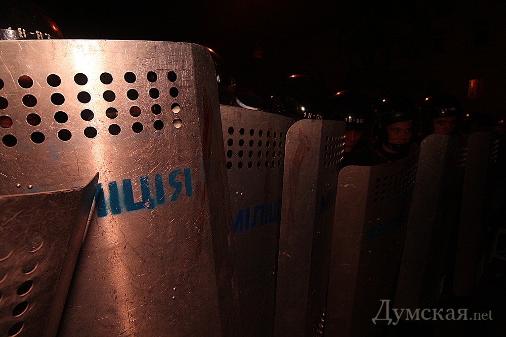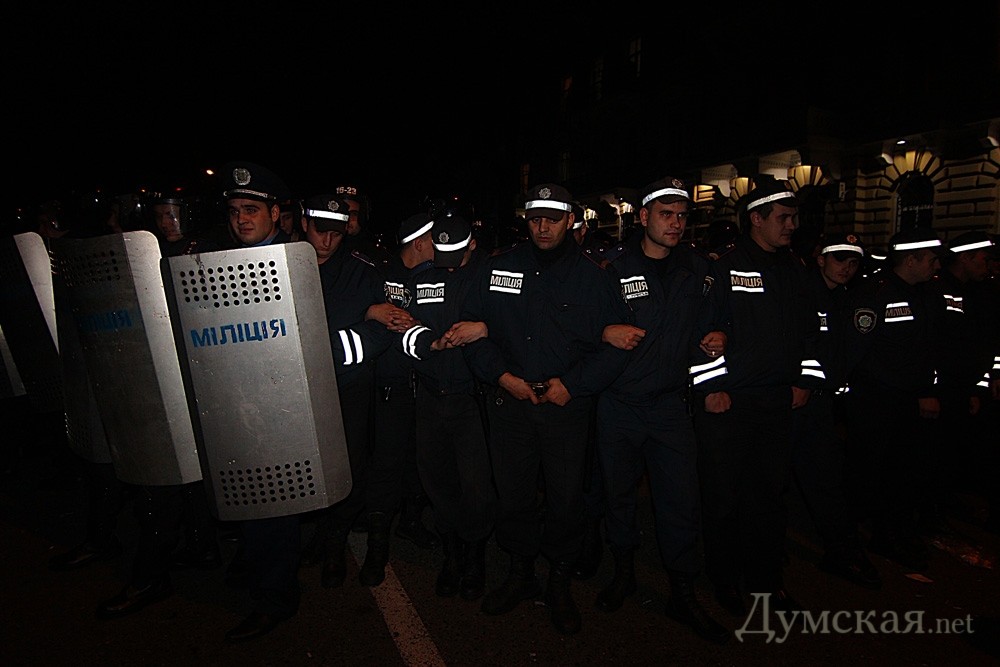 Милиция силой деблокировала облУВД и отправила Маркова по воздуху в Киев (обновляется, фото)Сотрудники милиции и внутренних войск приступили к разгону сторонников Маркова, которые блокируют выезды из облУВД. Как передает наш корреспондент, две линии правоохранителей со щитами и дубинками идут навстречу друг другу. Одновременно группа бойцов «Беркута» пытается вытолкнуть «Порш Кайен» супруги экс-нардепа, закупоривший выезд из внутреннего двора здания. Похоже, силовики побеждают. Прошел слух, что Маркова если уже тайно не вывезли из милицейской твердыни, то вот-вот вывезут. ОБНОВЛЕНО В 3:05. Милиция оттеснила протестующих от здания управления и окружила их. Внедорожник оттащили. Сейчас будут вывозить «объект». Автозаки уже подогнали. ОБНОВЛЕНО В 3:15. У силовиков пятикратное преимущество в людях. Сейчас они уговаривают протестующих разойтись. Те ни в какую. Маркова пока не вывозят, хотя все готово. Киевскую трассу «Родина» перекрывать не планирует — некем. ОБНОВЛЕНО В 3:31. Милиция скрутила и вывела за кордон журналистов Антона Доценко и Константина Гака. Задерживать их не стали. ОБНОВЛЕНО В 3:35. Милиционеры рассказывают зевакам, что «идет зачистка». ОБНОВЛЕНО В 3:37. Депутат Васильев говорит, что его однопартийцу, лидеру областной ячейки «Родины» Константину Гринченко сломали палец и огрели дубинкой по голове. ОБНОВЛЕНО В 3:46. Оцепление снимают, хотя автозаки еще стоят у выезда из управления. Похоже, Маркова таки вывезли раньше, а разгон демонстрации был для отвода глаз. ОБНОВЛЕНО В 3:51. По слухам, в столицу Марков полетит на вертолете. ОБНОВЛЕНО В 4:02. Еще один слушок: якобы в одесском аэропорту сел самолет самого министра внутренних дел. На нем якобы и доставят опального политика в Киев. ОБНОВЛЕНО В 4:41. Последние бойцы «Беркута» рассаживаются в автобусы. Покинули Еврейскую и автозаки. Судя по всему, все. Завтра ждем новостей из Печерского суда. Фото Игоря Димитриева, Александра Гиманова и Сергея Диброва СМЕРТЬ РОСІЙСЬКИМ ОКУПАНТАМ! Помітили помилку? Виділяйте слова з помилкою та натискайте control-enter |