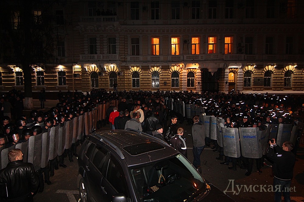 Четыре человека задержаны сотрудниками Приморского райотдела милиции во время столкновений возле областного управления внутренних дел на улице Еврейской, 12 минувшей ночью. Об этом сообщила пресс-служба облУВД. Как рассказали в милиции, открыто уголовное производство сразу по пяти статьям – 293 (групповое нарушение общественного порядка), 296 ч.3 (хулиганство), 341 (захват государственных или общественных зданий), 342 (сопротивление представителю правоохранительного органа), 345 ч.2 (угроза или насилие в отношении работника правоохранительного органа). Четыре нарушителя, которых задержали во время беспорядков, доставлены в Приморский райотдел. По данным пресс-службы, за медицинской помощью обратились шесть работников милиции и одно гражданское лицо, которые получили телесные повреждения во время столкновений. Ранее облздрав сообщил об одиннадцати пострадавших, восемь из которых — сотрудники милиции. СМЕРТЬ РОСІЙСЬКИМ ОКУПАНТАМ! Помітили помилку? Виділяйте слова з помилкою та натискайте control-enter |