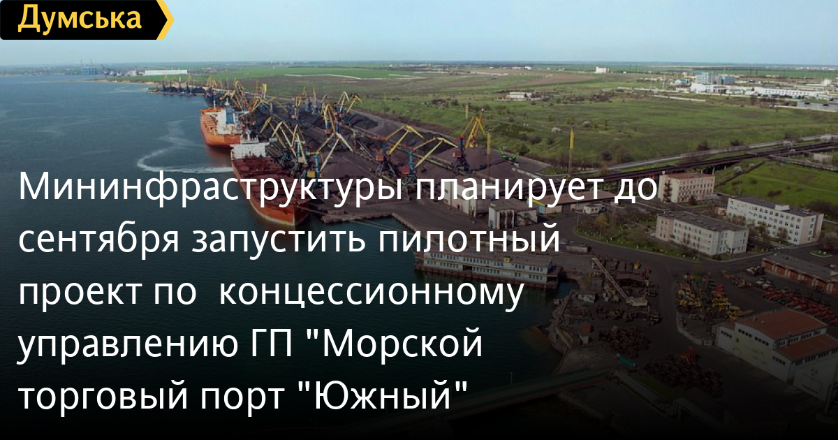Мининфраструктуры планирует до сентября запустить пилотный проект по концессионному управлению ГП «Морской торговый порт «Южный»