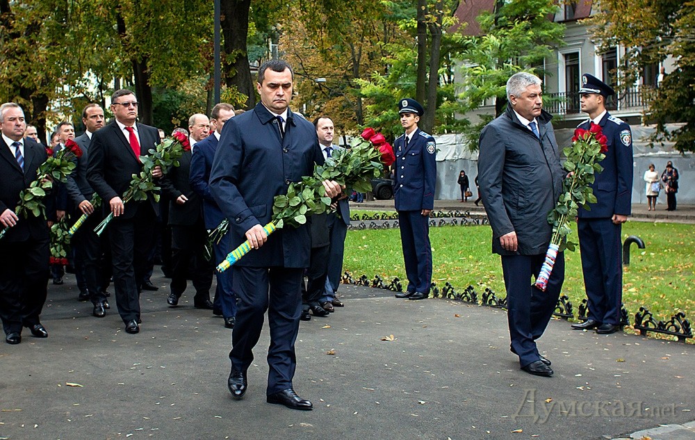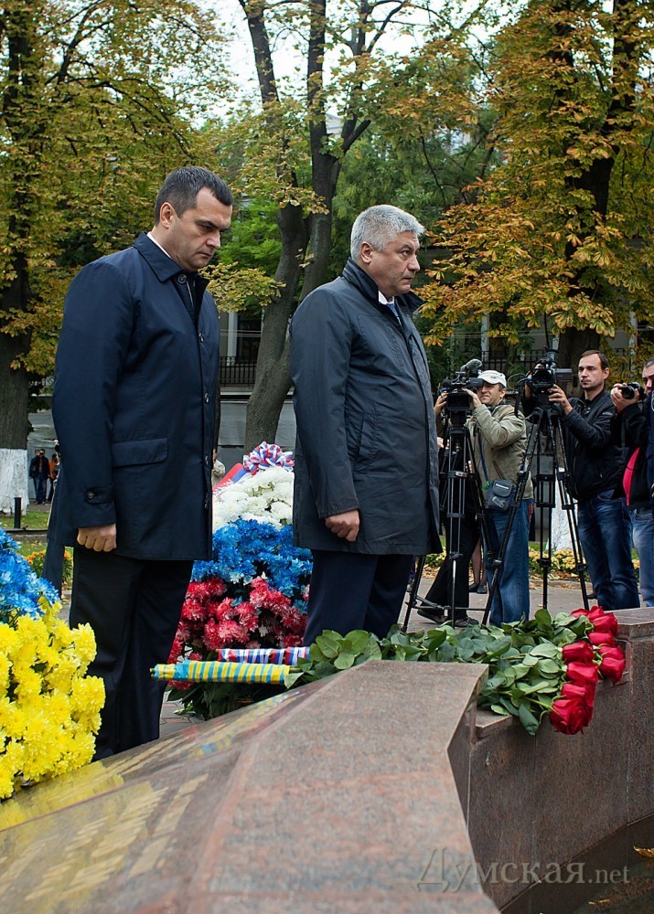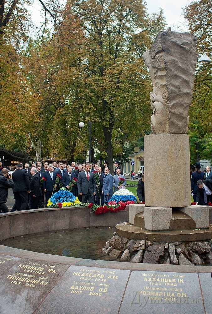 Главы МВД Украины и России возложили цветы к памятнику погибшим милиционерам и отправились гулять по городуМинистры внутренних дел Украины и Российской Федерации Виталий Захарченко и Владимир Колокольцев во время встречи в Одессе обсудили актуальные проблемы защиты граждан обоих государств. В частности, украинские милиционеры поделились с российскими коллегами опытом по охране общественного порядка во время Чемпионата Европы по футболу 2012 года. Украинские правоохранители выразили готовность помочь российским полицейским в вопросах обеспечения общественной безопасности во время Олимпиады-2014 в Сочи. После встречи главы МВД Украины и России возложили цветы к памятнику погибшим милиционерам на Александровском проспекте. Обещанный еще в отеле «Бристоль» подход к прессе так и не состоялся и международная делегация в полном составе пошла осматривать одесские архитектурные красоты. СМЕРТЬ РОСІЙСЬКИМ ОКУПАНТАМ! Помітили помилку? Виділяйте слова з помилкою та натискайте control-enter |
