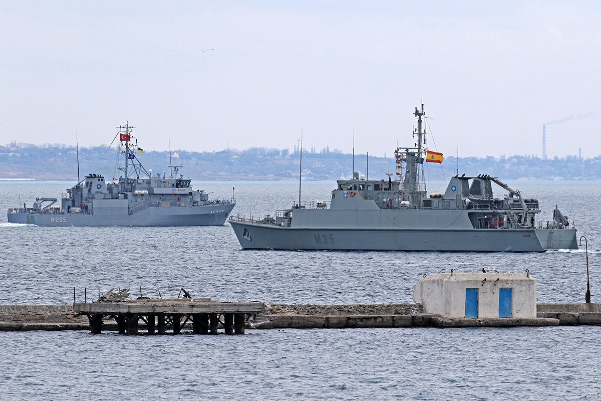 Сегодня утром минно-тральная группа НАТО попрощалась с Одессой и вышла в море на совместные учения типа Passex. От Военно-морских сил Украины в них принимает участие рейдовый тральщик U360 «Геническ». Как передает корреспондент «Думской», корабли начали выход в море около 9 утра, после двухчасовой подготовки. Цель тренировок заключается в отработке взаимодействия в составе многонационального тактического соединения кораблей в соответствии со стандартами НАТО, повышении уровня совместимости и приобретении офицерами украинских ВМС опыта организации противоминной борьбы. Тренировки по программе Passex включают прохождение кораблей за тралом, тактическое маневрирование, тренировки по радиосвязи, осуществления поиска и уничтожения мин (имитаторов). «Геническ» вышел в море немного раньше и ожидал ордер НАТО на рейде. Первыми вышли турки TCG Alanya, за ними последовали испанцы ESPS Duero и поляки ORP K.X.Czernicki. Последним вышел немецкий тральщик FGS Rottweil. Фото — Сергей Смоленцев СМЕРТЬ РОСІЙСЬКИМ ОКУПАНТАМ! Помітили помилку? Виділяйте слова з помилкою та натискайте control-enter |
