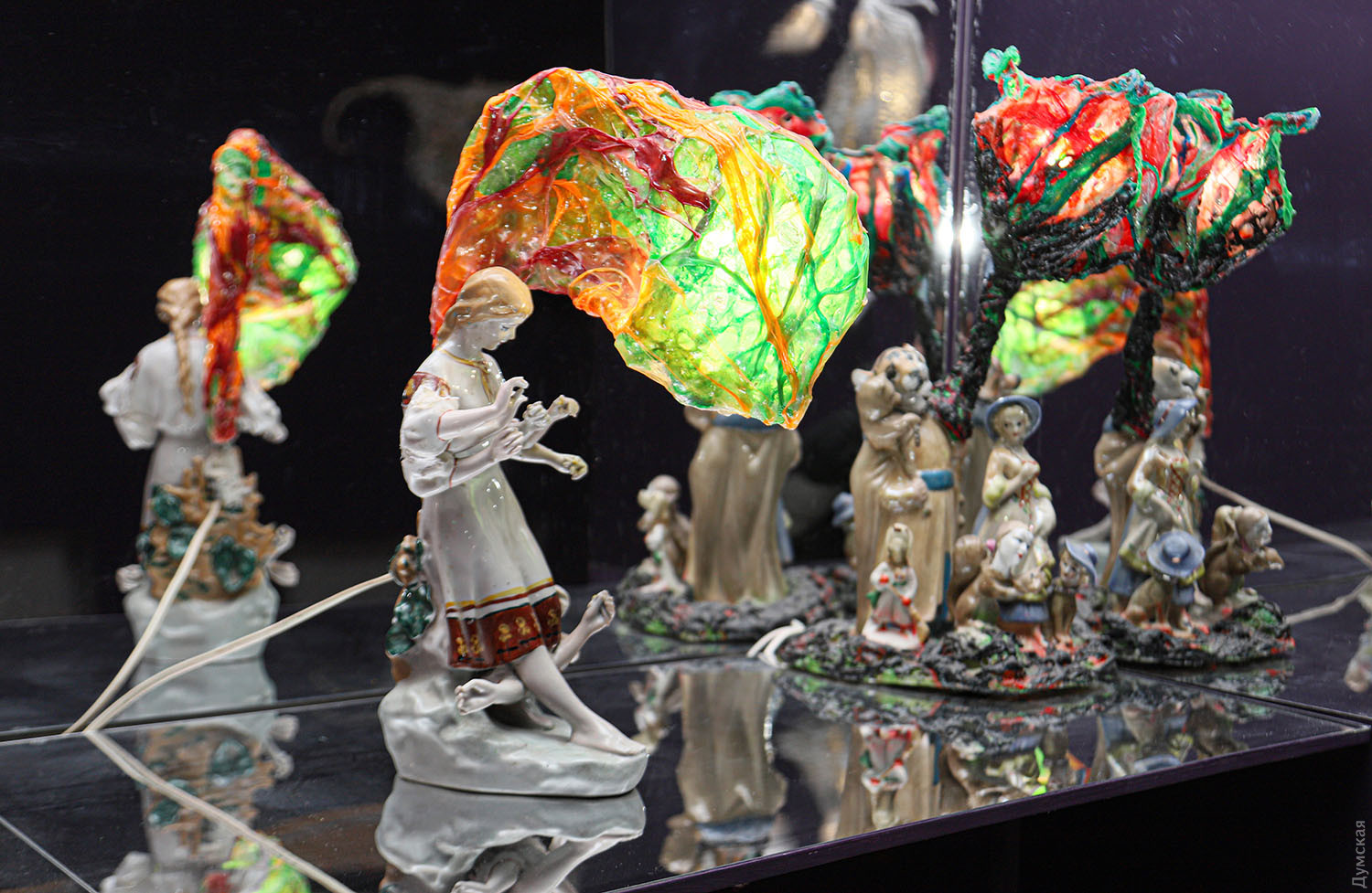 Виставка одеського художника Дмитра Дульфана відкрила новий простір Музею сучасного мистецтва на Європейській, 31/33. Директор установи Семен Кантор раз у раз вибігає на вулицю, нарікаючи, що неонова вивіска не настільки помітна при яскравому сонячному світлі. Не біда, підуть люди на світло мистецтва! Дмитро Дульфан (1971-2024), чиєю виставкою відкривається нова локація, саме і світив, скільки було сил. На першому поверсі зібрані унікальні об’єкти, що світяться, багато з них поєднують «трансфлору» із готовими фаянсовими фігурками. Символічно: нове проростає з традиційного, стаючи гармонійним сплавом. Головним куратором проєкту «Міражі Каліпсо: Полонений глибинами Дмитро Дульфан» став Андрій Сігунцов, співкураторами – Анна Мороховська та Сергій Поляков.