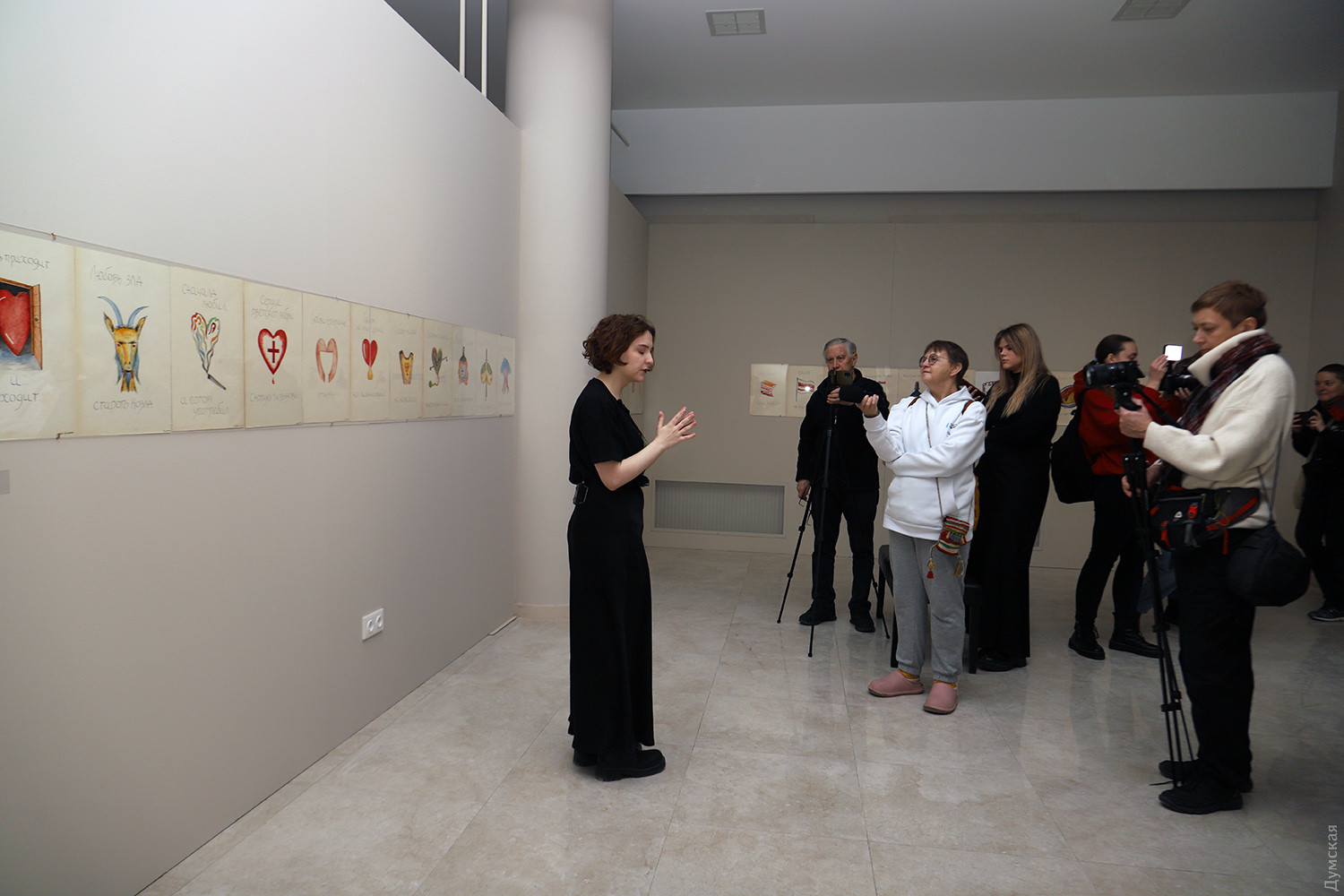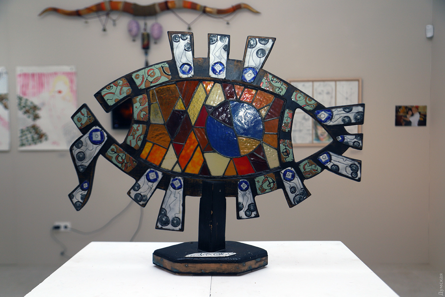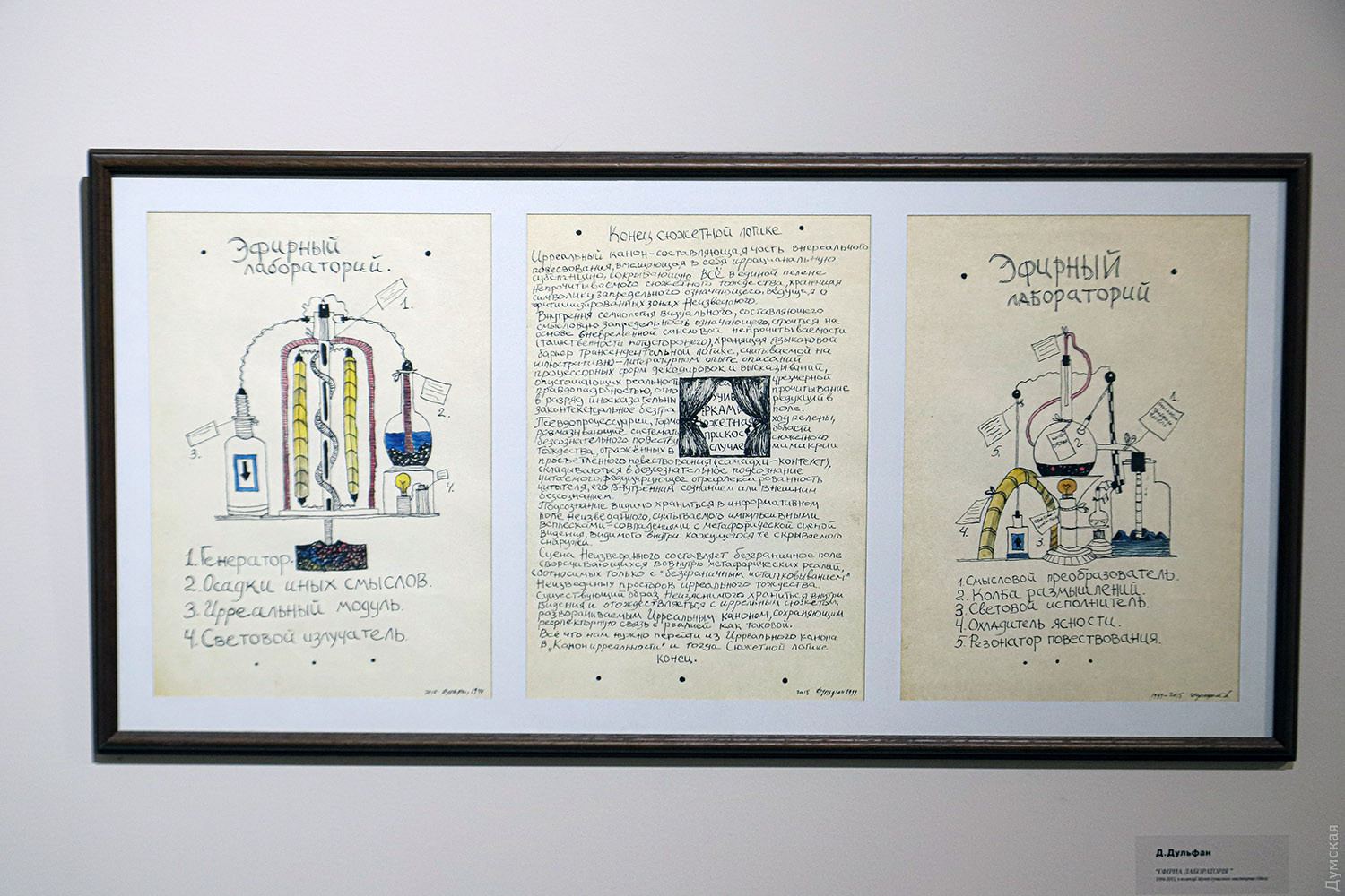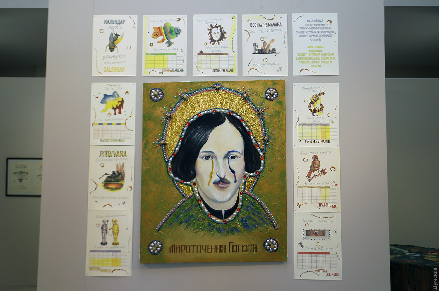 «Дульфан шукав відповіді у крайнощах людського буття, у місцях, де мистецтво розчиняється у безодні тілесного й містичного, де межа між життям і смертю, між творенням та руйнуванням стирається, — зазначають куратори музею. — Його найвідоміші роботи, так звані «світильники», стають символами порожнечі, тіл та ідей, що розпадаються, не знаходять форми, але продовжують пульсувати в просторі, вібруючи в такт із тими, хто на них дивиться. Це не просто об’єкти, а сліди невидимого, що пробивається з іншого боку реальності. Він створює вимір, де час зупиняється, а кожна спроба знайти себе стає актом безжального саморуйнування». «Він руйнувався – але прикрашений квітами», писав Віктор Гюго про одного зі своїх персонажів. Діма Дульфан дозволяв розквітати своїм роботам, в яких би жанрах та техніках вони не створювалися. Чи руйнував художник існуючі поза його особистістю стереотипи? Подивіться на «мироточивого» іконоподібного Гоголя: видно ж, що великому письменнику боляче за рідну Україну. Звісно, Діма, будучи сам глибокою людиною, не був байдужим і до морських глибин — його вабили таємниця, недомовленість, естетика античності. «Мистецтво Дмитра Дульфана — це занурення в безодню, подорож, що не має кінцевого порту, — додають куратори. — Це ритуал, який не веде до світла, а залишає в полоні темряви, де світло тіней поглинає реальність. У його творах звучить поклик Каліпсо — підводної богині, що спокушає і водночас замикає у просторах нездійсненного. Виставковий простір постає як води океану, а твори — уламки розбитого міфу, фрагменти життя, що розчинилося у хвилях». Дітищем Дульфана була оригінальна галерея «Вікно», яка поєднала сучасне мистецтво з авторськими винами, і на виставці знайшлося місце роботам митців, котрі там виставлялися. Вітражна риба Сергія Лиховида, складені з друкованих текстів колажі Ольги Ярової, фото Сергія Полякова, розкута графіка Олени Мазур та багато інших творів, що знайшли відгук у душі Дульфана, додали барв експозиції. Нагадаємо, що заснований 2008 року бізнесменом і меценатом Вадимом Мороховським, музей спочатку відкрився на Сабанському провулку, 5а. Він виріс із колекції Михайла Кнобеля і став платформою для дослідження і збереження одеської художньої традиції. Пізніше він переїхав на Французький бульвар, 8, а потім — в історичну будівлю на Леонтовича, 5, яку музей реставрував. Ця адреса стала домівкою й для двох молодіжних центрів, а велика сучасна виставкова зала приймала українських і міжнародних художників. У 2021-му музей отримує простір на Французькому бульварі, 36, але не встигає відкритися через повномасштабне вторгнення рф в Україну. Попри відсутність власного простору, музей проводить 7 виставок у партнерських локаціях, це Одеський музей західного і східного мистецтва, Галерея Незламності, Національний музей імені Андрея Шептицького у Львові. За цей час МСМО також представив сучасне українське мистецтво за кордоном: у Німеччині, Франції, Литві, Польщі, Італії. Авторка — Ірен Адлер, фото Олега Владимирського СМЕРТЬ РОСІЙСЬКИМ ОКУПАНТАМ! Помітили помилку? Виділяйте слова з помилкою та натискайте control-enter |