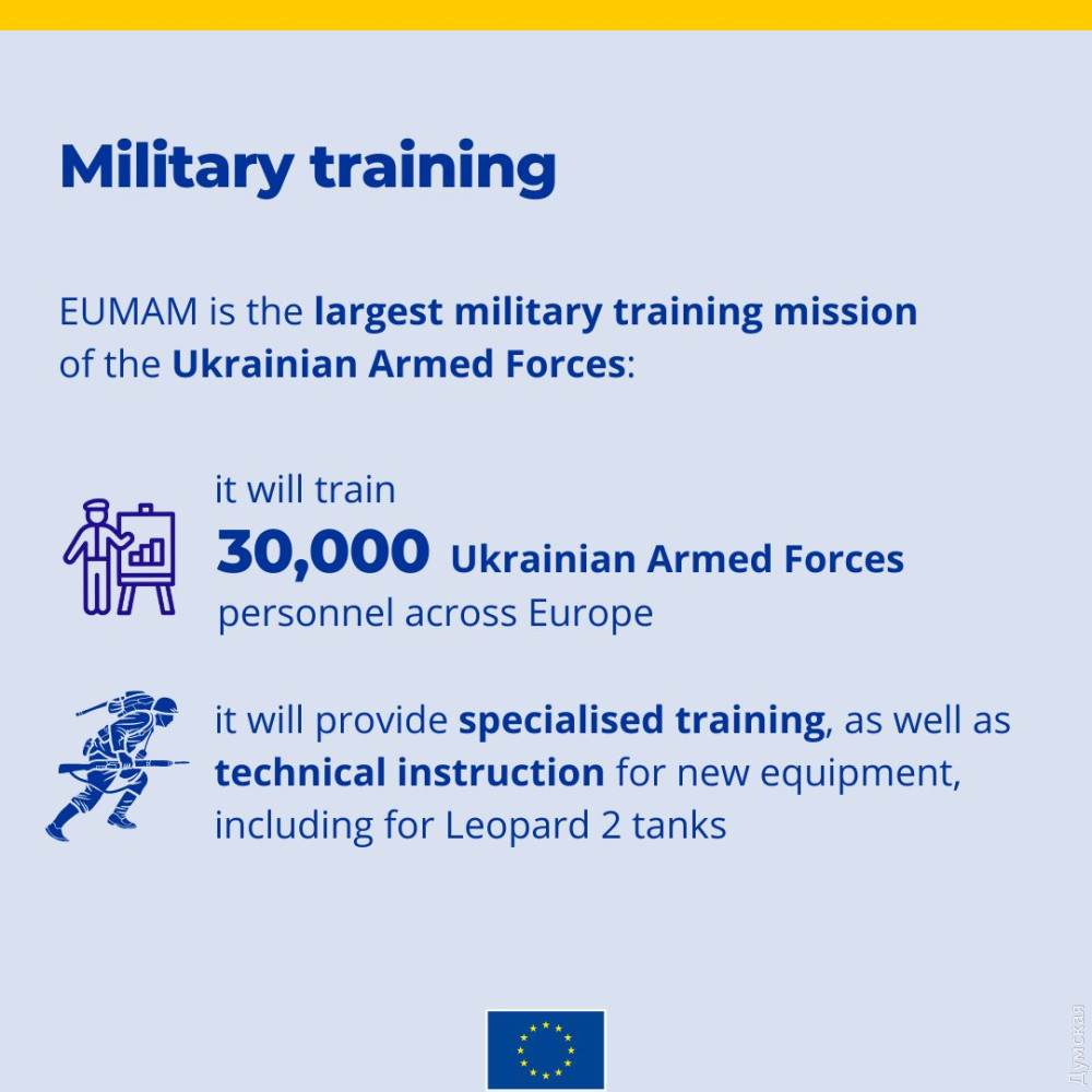 Місію Євросоюзу з підготовки українських військовослужбовців розширено вдвічі — до 30 тисяч солдатівЄвропейський Союз удвічі розширив тренувальну місію з підготовки солдатів і офіцерів Збройних сил України (EU Military Assistance Mission). Верховний представник ЄС із закордонних справ і політики безпеки Жозеп Боррель заявив, що тренування пройдуть 30 тисяч українських військових замість раніше запланованих 15 000. Про це Боррель повідомив прем'єр-міністру України Денису Шмигалю під час візиту до Києва 2 лютого, в рамках якого він прибув до української столиці разом із 15 єврокомісарами та президентом Єврокомісії Урсулою фон дер Ляєн. Зазначається, що в рамках місії українські танкісти також проходитимуть підготовку на Leopard 2. Також ЄС запускає в Україні місію гуманітарного розмінування, яку профінансує на 25 мільйонів євро. СМЕРТЬ РОСІЙСЬКИМ ОКУПАНТАМ! Помітили помилку? Виділяйте слова з помилкою та натискайте control-enter |