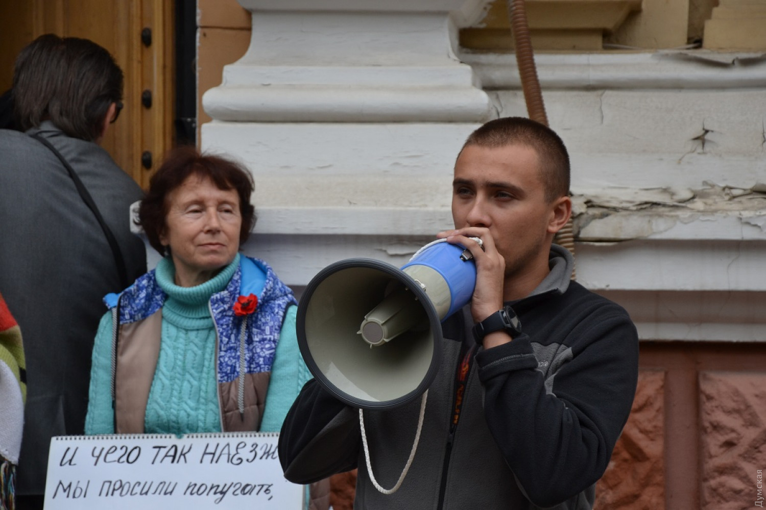 Многочисленный митинг состоялся сегодня днем у стен здания ГУНП на Еврейской улице — около 200 представителей патриотических организаций, общественников и простых одесситов выразили протест против полиции, которая, по их мнению, допускает нападения на активистов. Несмотря на солидное количество участников, активных действий предпринимать митингующие не решились. Присутствует на мероприятии бывший глава одесской ячейки «Правого сектора» Сергей Стерненко. Он предложил зайти в здание и там ждать генерала Дмитрия Головина. Около 20 человек зашли в зону ожидания на первом этаже, но прорываться через турникеты не стали. «Нападения на патриотически настроенных активистов стали системными, но полиция не делает ничего, чтобы найти нападавших на Кузаконя, Подпалую, Козьму, Подолянку и других», — отметил Сергей Стерненко. Митингующих встретил заместитель начальника ГУНП Сергей Махотин, который объяснил, что Дмитрий Головин находится на выезде по факту убийства. Разглашать какую-либо информацию по расследованию нападения на Олега Михайлика он отказался. «Есть версии, идут следственные действия», — прокомментировал он. Акцию назвали бессрочной и призвали активистов собираться у здания ГУНП ежедневно в 16:00. СМЕРТЬ РОСІЙСЬКИМ ОКУПАНТАМ! Помітили помилку? Виділяйте слова з помилкою та натискайте control-enter