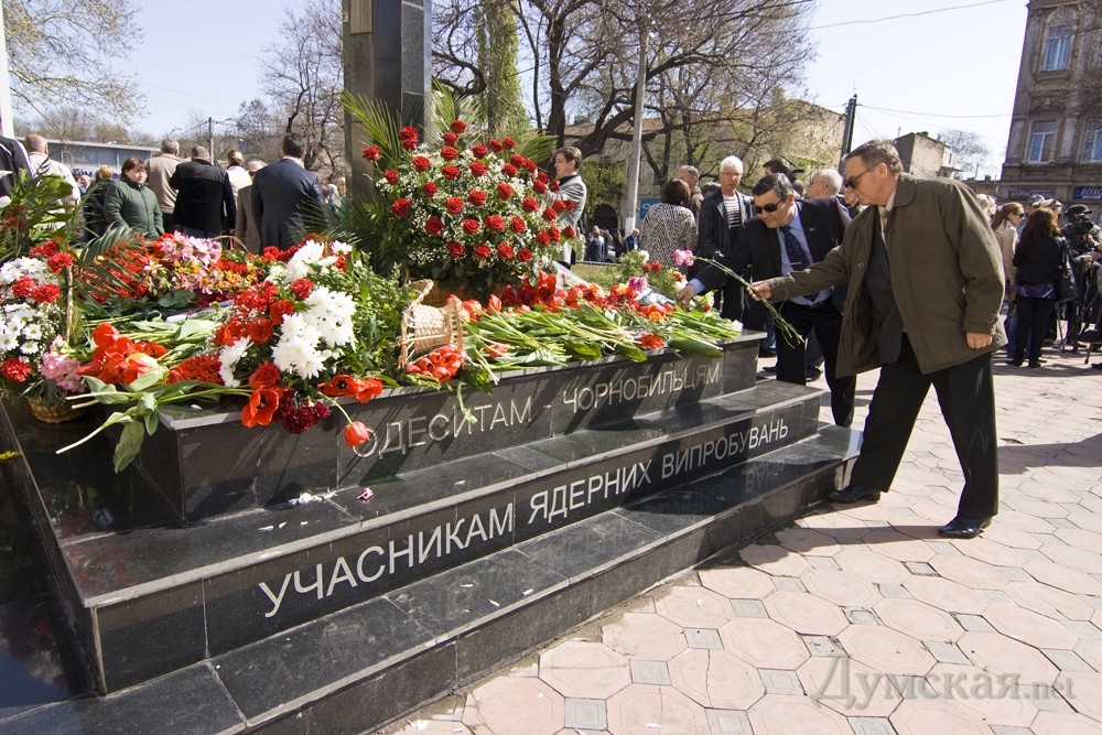 В Одессе почтили память погибших ликвидаторов аварии на Чернобыльской АЭС. Митинг-реквием с участием самих ликвидаторов, а так же, городских и областных властей прошел сегодня у памятника одесситам-чернобыльцам на Александровском проспекте. Справка: 26 апреля 2012 года исполнилось 26 лет со дня аварии на Чернобыльской атомной электростанции. В результате катастрофы в 1986 году более 115 тысяч человек были эвакуированы из 30-километровой зоны вокруг АЭС. В ликвидации последствий аварии приняли участие порядка 600 тыс. человек