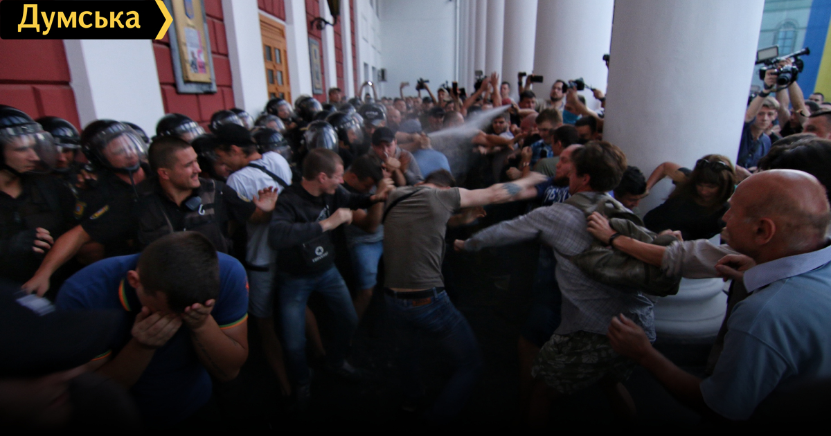 Возле мэрии дерутся из-за «Виктории»: в ход пошли газ и светошумовые гранаты (обновляется, фото, видео)