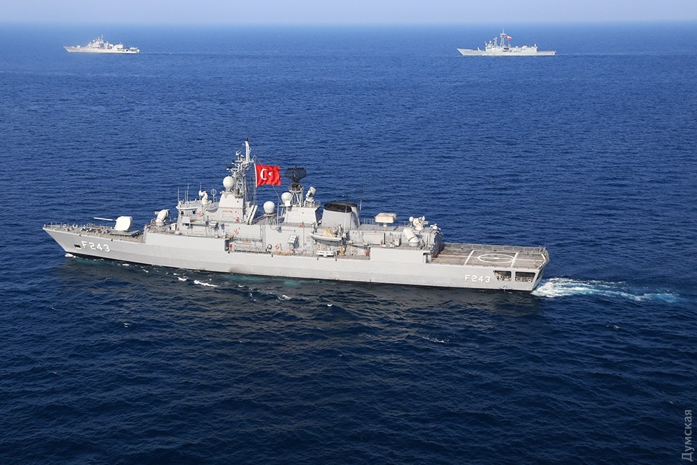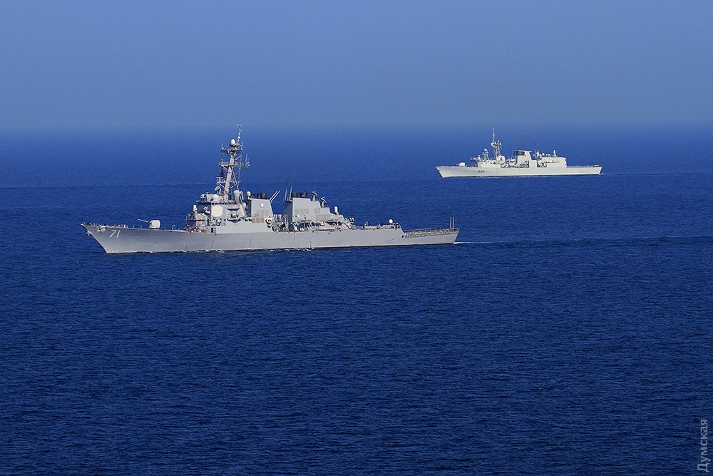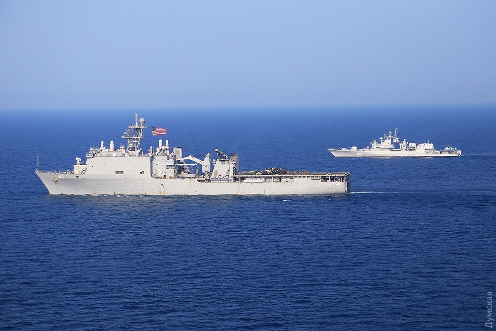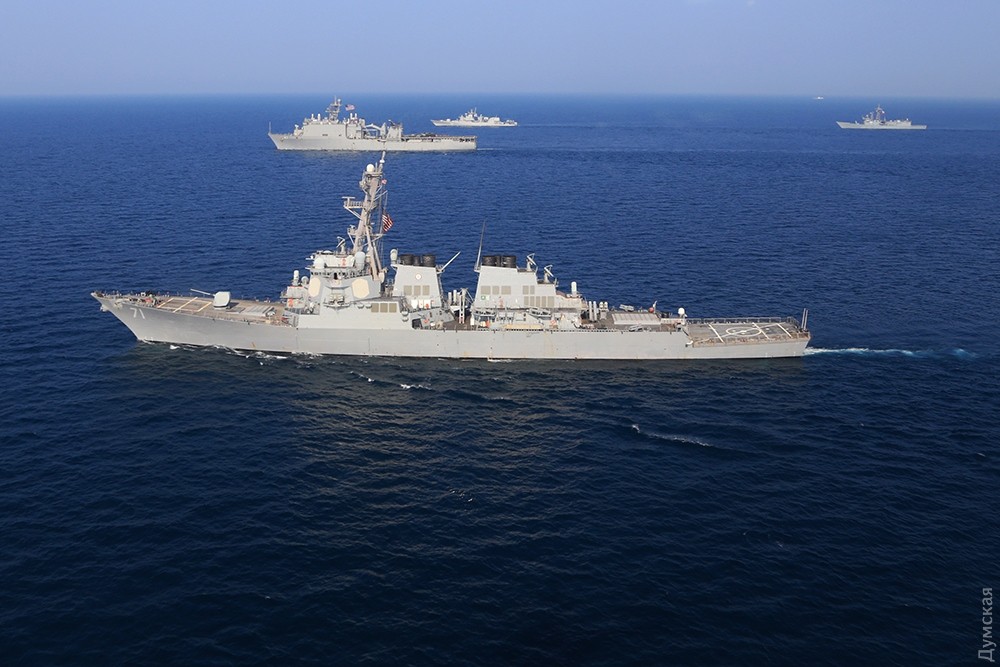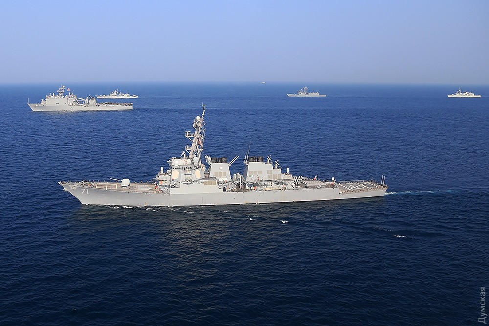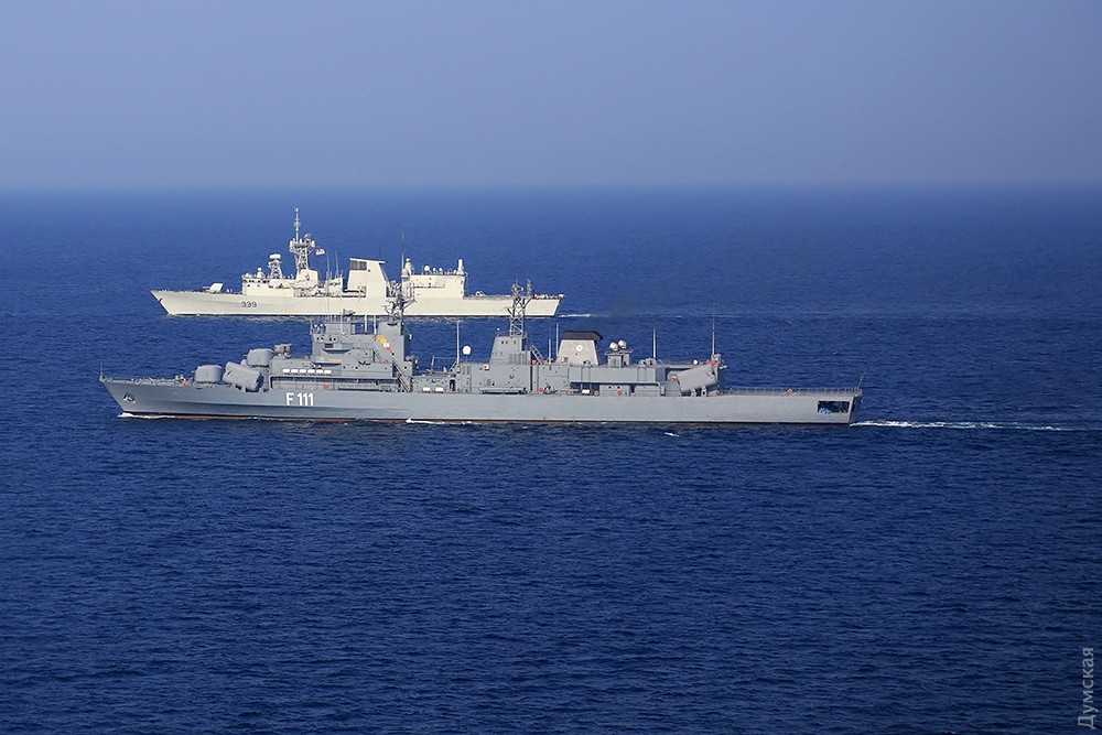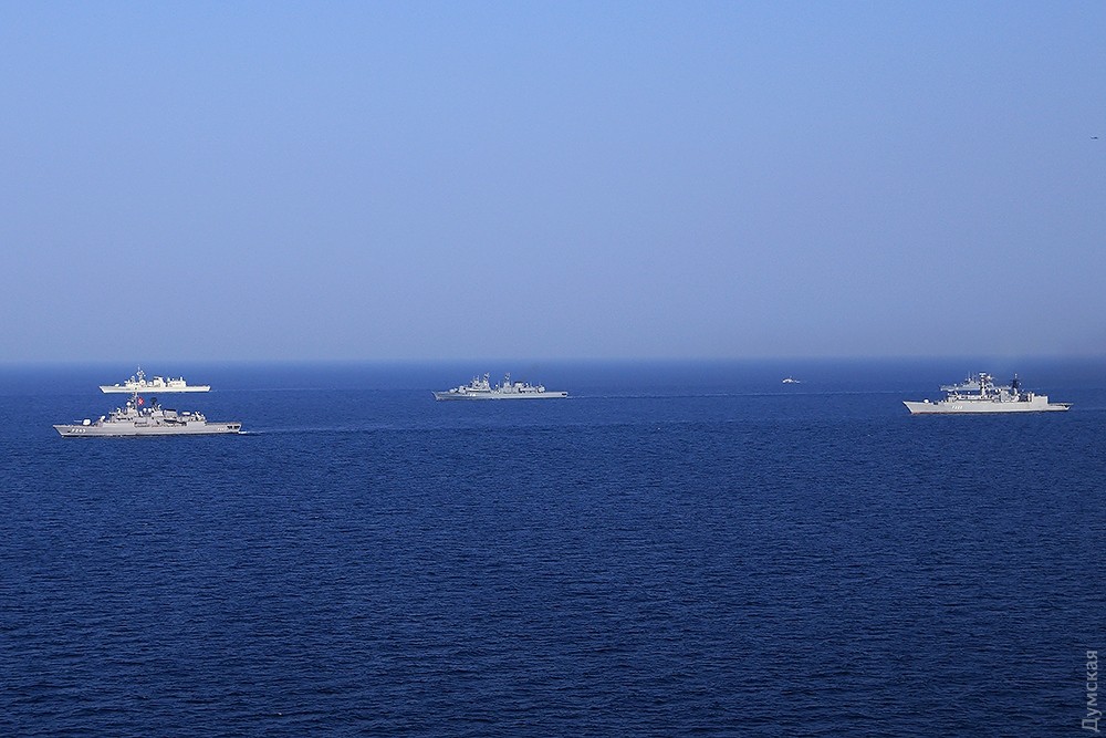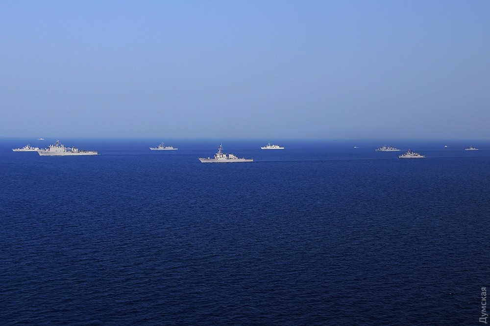 Многонациональная эскадра, разведчики и маневры: сегодня завершается «Си Бриз-2016»Сегодня, 29 июля, эскадра кораблей, участвующих в ежегодных международных учениях «Си Бриз-2016», вышла в море на маневры. Ордер кораблей насчитывал 15 единиц. На протяжении нескольких часов они взаимодействовали друг с другом в общем строю, а над ними, сменяя друг друга, кружило несколько вертолетов и самолетов, передает корреспондент «Думской». Корабли шли тремя колоннами. С украинской стороны в маневрах принимали участие фрегат «Гетьман Сагайдачный», патрульный арткатер «Скадовск», средний десантный корабль «Юрий Олефиренко», ракетный катер «Прилуки», тральщик «Геническ» и два корабля ГПСУ BG50 «Григорий Куропятников» и BG62 «Подилля». С американской — были эсминец DDG71 Ross и десантный корабль LSD41 Whidby Island. Также в море вышли три румынских корабля — фрегаты F222 Regina Maria, F111 Marasesti и корвет F264 CAm Sebastian, — канадский фрегат F339 «Шарлоттаун», польский F273 «Генерал Тадеуш Костюшко» и турецкий F243 YiLdirim. Справа от ордера, на расстоянии нескольких километров, шел разведывательный корабль РФ «Экватор», а в нескольких милях позади — его систершип «Лиман». С канадского фрегата и нашего флагмана поднимались вертолеты, отрабатывал взаимодействие американский базовый патрульный Р-3 Орион, а с аэродрома Кульбакино в район учений ходил флотский транспортный Ан-26. Завтра американцы должны снова зайти в Одесский порт для подведения итогов учений. Фото Сергея Смоленцева СМЕРТЬ РОСІЙСЬКИМ ОКУПАНТАМ! Помітили помилку? Виділяйте слова з помилкою та натискайте control-enter Новини по цій темі: 28 червня 2023: Розмінування Чорного моря: екіпажі українських тральщиків навчаються протимінних дій на "Сі Бриз-2023" 22 лютого 2023: Українські військові розвідники використовують американський вертоліт "Блекхоук" (фото) 13 січня 2022: «Си Бриз-2022»: морские пограничники из Одесской области во время учений возьмут под контроль Дунай и Днепр 10 січня 2022: В Одессе начали планировать учения «Си Бриз-2022» 28 грудня 2021: Катер-корвет, противоминные группы и рейд «Дефендера»: НАТО обеспечило постоянное присутствие кораблей в Черном море 29 листопада 2021: В парламенте зарегистрировали неотложный законопроект Зеленского о допуске вооруженных сил других государств на территорию Украины 19 липня 2021: Корабли НАТО покидают Черное море после международных учений |