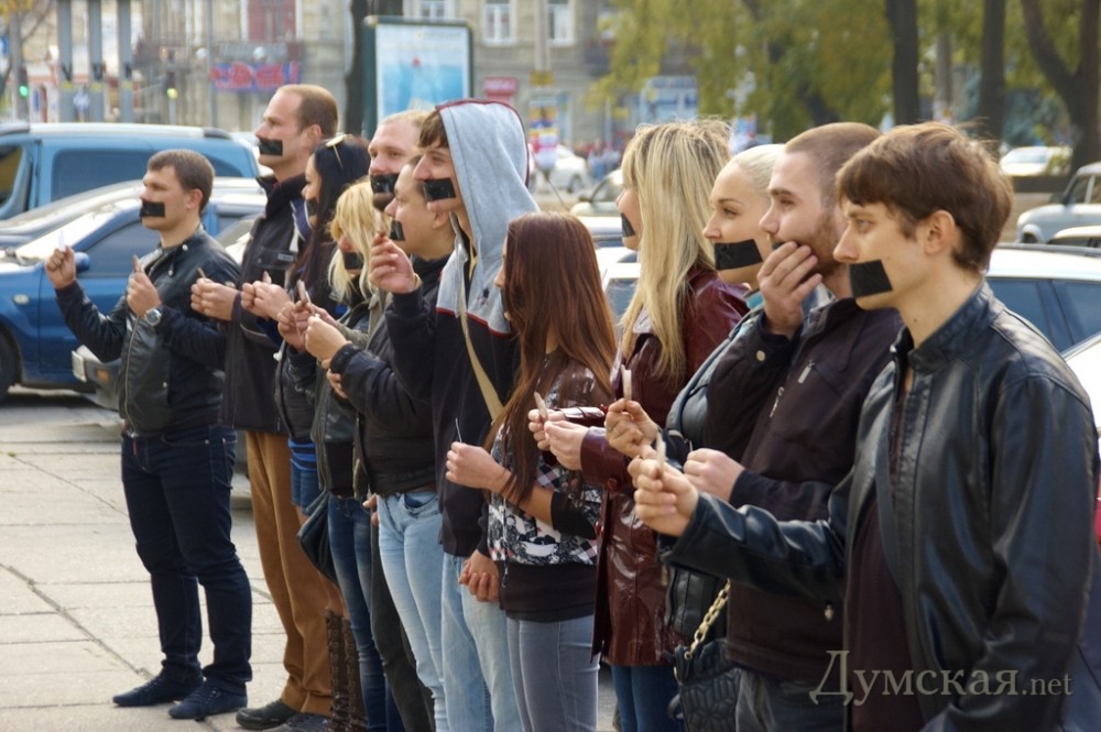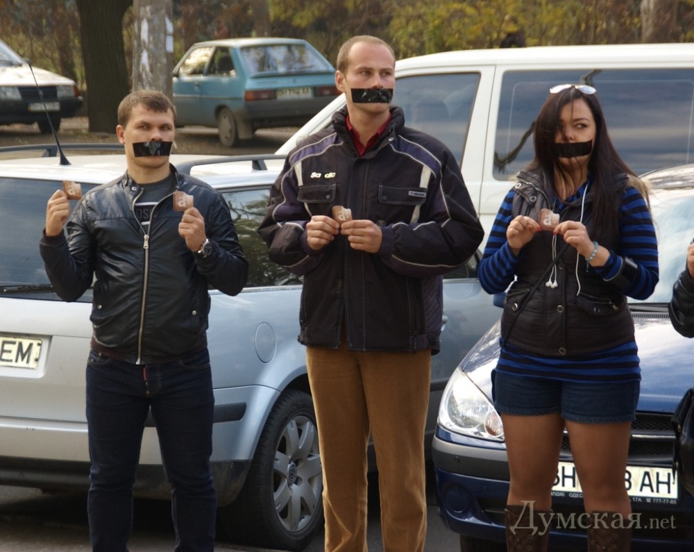 Сегодня в Одессе прошла молчаливая акция протеста против намерения властей аннулировать лицензию телекомпании АТВ. Ввиду судебного запрета на проведение митингов и демонстраций, протест прошел в форме флешмоба, у которого, как известно, нет организаторов. В акции участвовали в основном активисты общественной организации «Молодежное Единство» и журналисты. Некоторые заклеили себе рот скотчем, чтобы выразить свое несогласие с попытками заткнуть рот телеканалу. Что характерно, на пятачке перед вторым админзданием областного совета на Канатной улице плечом к плечу молчали как сотрудники изданий, явно симпатизирующих Маркову, так и представители СМИ, которые относятся к опальному политику весьма скептически. Также во флешмобе принял участие депутат облсовета Михаил Шмушкович, близкий соратник Алексея Гончаренко. Журналистов и сотрудников телеканала АТВ среди участников флешмоба не было. Участники мероприятия вели себя не только тихо, но и спокойно, не пытались нарушать общественный порядок и штурмовать административное здание. СМЕРТЬ РОСІЙСЬКИМ ОКУПАНТАМ! Помітили помилку? Виділяйте слова з помилкою та натискайте control-enter |