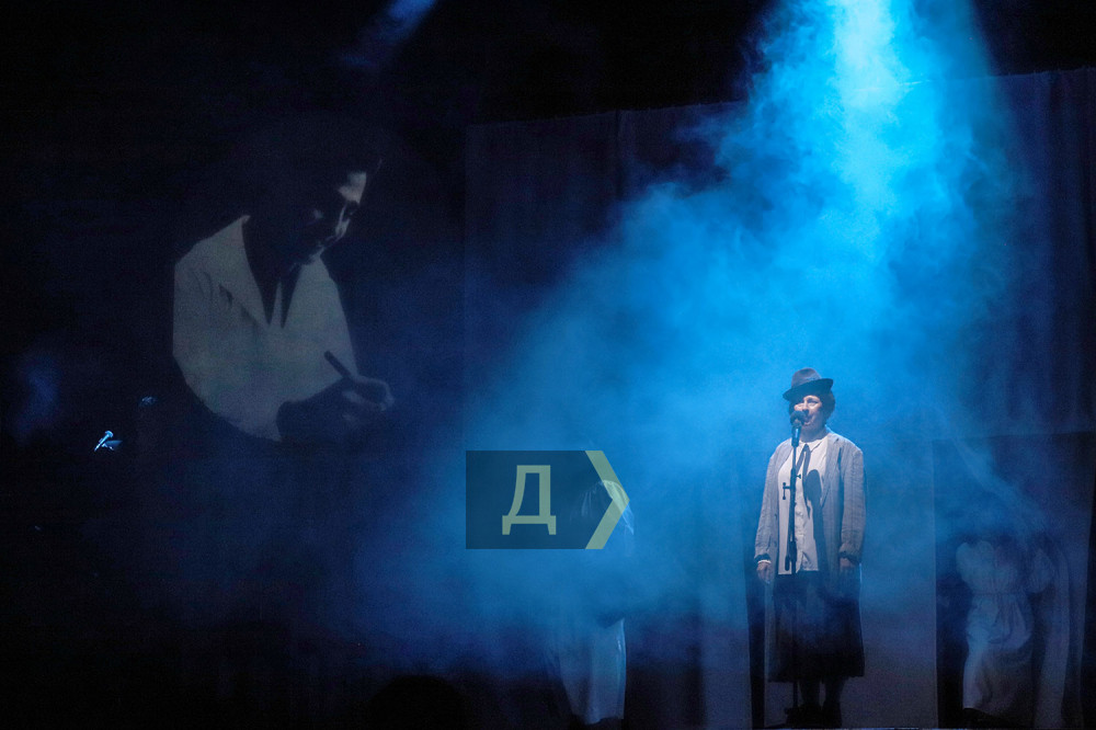 Перед святковою програмою, де зустрілися фрагменти з репертуарних вистав і етюд до «Сонячних кларнетів» Павла Тичини, театрали занурилися в історію. На сцену вийшла Олена Юзвак в образі організатора та першого режисера нашого ТЮГу — Софії Мануйлович, і отримала вітальну телеграму від генію українського театру Леся Курбаса (це художнє припущення одеситів, але було зворушливо).