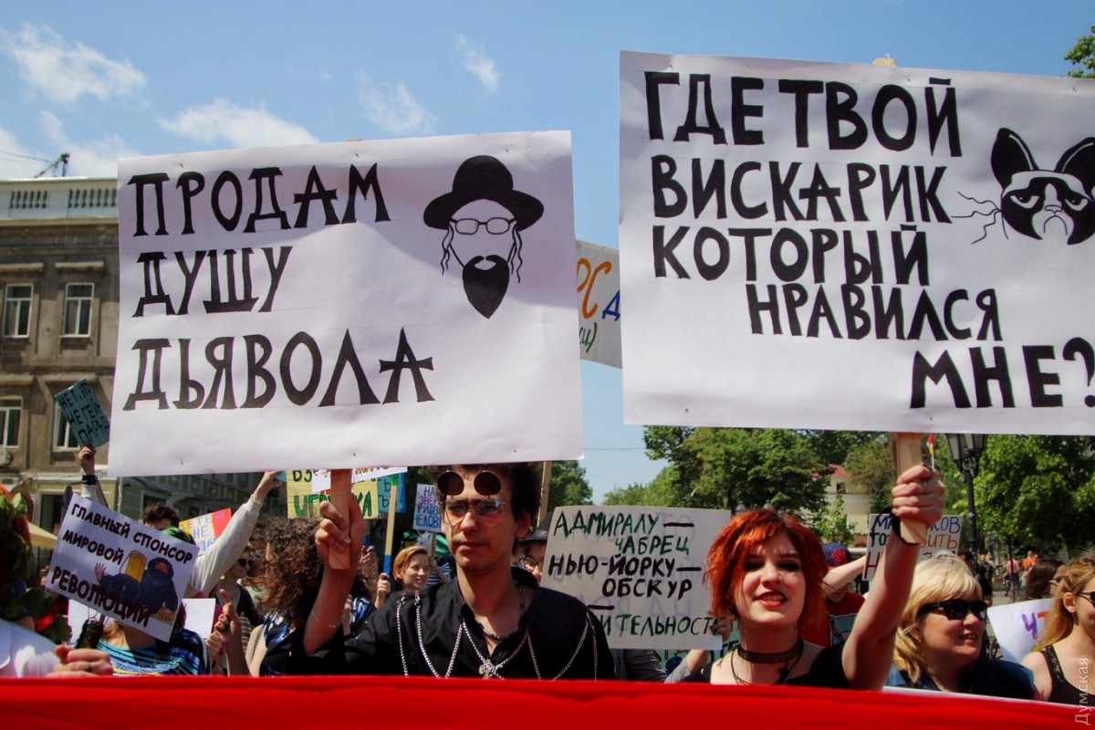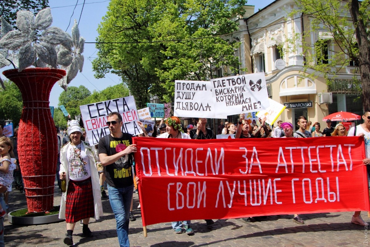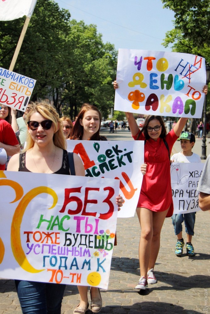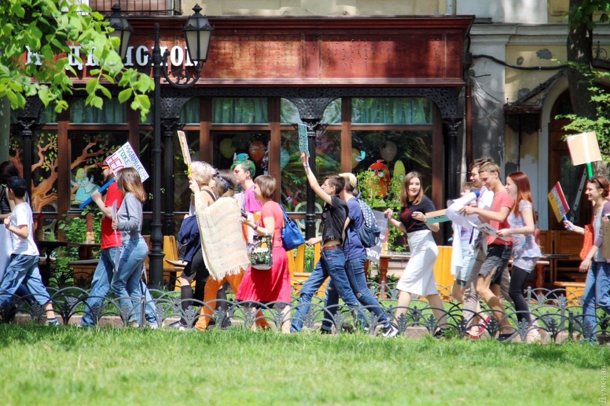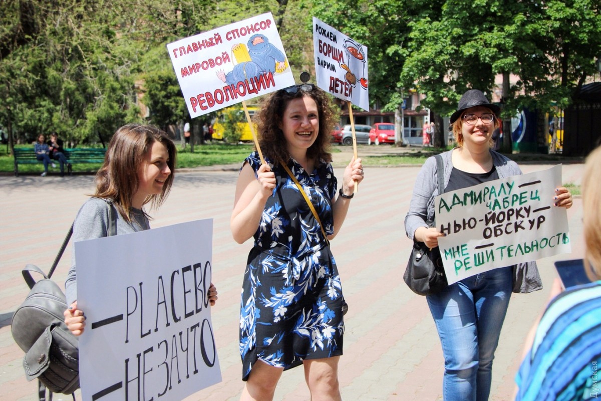 С каждым годом уже ставшая традиционной одесская Монстрация привлекает все больше сторонников абсурдных лозунгов и любителей двусмысленных транспарантов. Сегодня в этом шумном и ярком шествии приняло участие более 50 одесситов, передает корреспондент «Думской». Участники веселого марша, скандируя бессмысленные кричалки вроде «Молоко, творог, сметана» и «Уважайте чувства ворующих», прошли от Соборной площади по Дерибасовской к Приморскому бульвару и обратно. Некоторые участники были в костюмах. Свидетели Диониса были одеты в халаты, а всю процессию сопровождал белый человек-единорог. Акция прошла весело и красочно, на радость одесситам и гостям города, оказавшимся в этот момент в центре. Автор — Александр Гиманов СМЕРТЬ РОСІЙСЬКИМ ОКУПАНТАМ! Помітили помилку? Виділяйте слова з помилкою та натискайте control-enter |