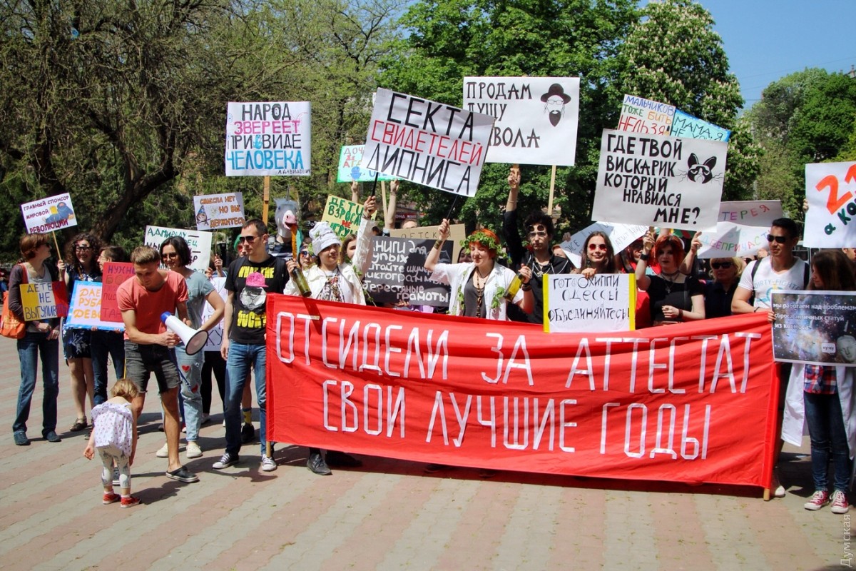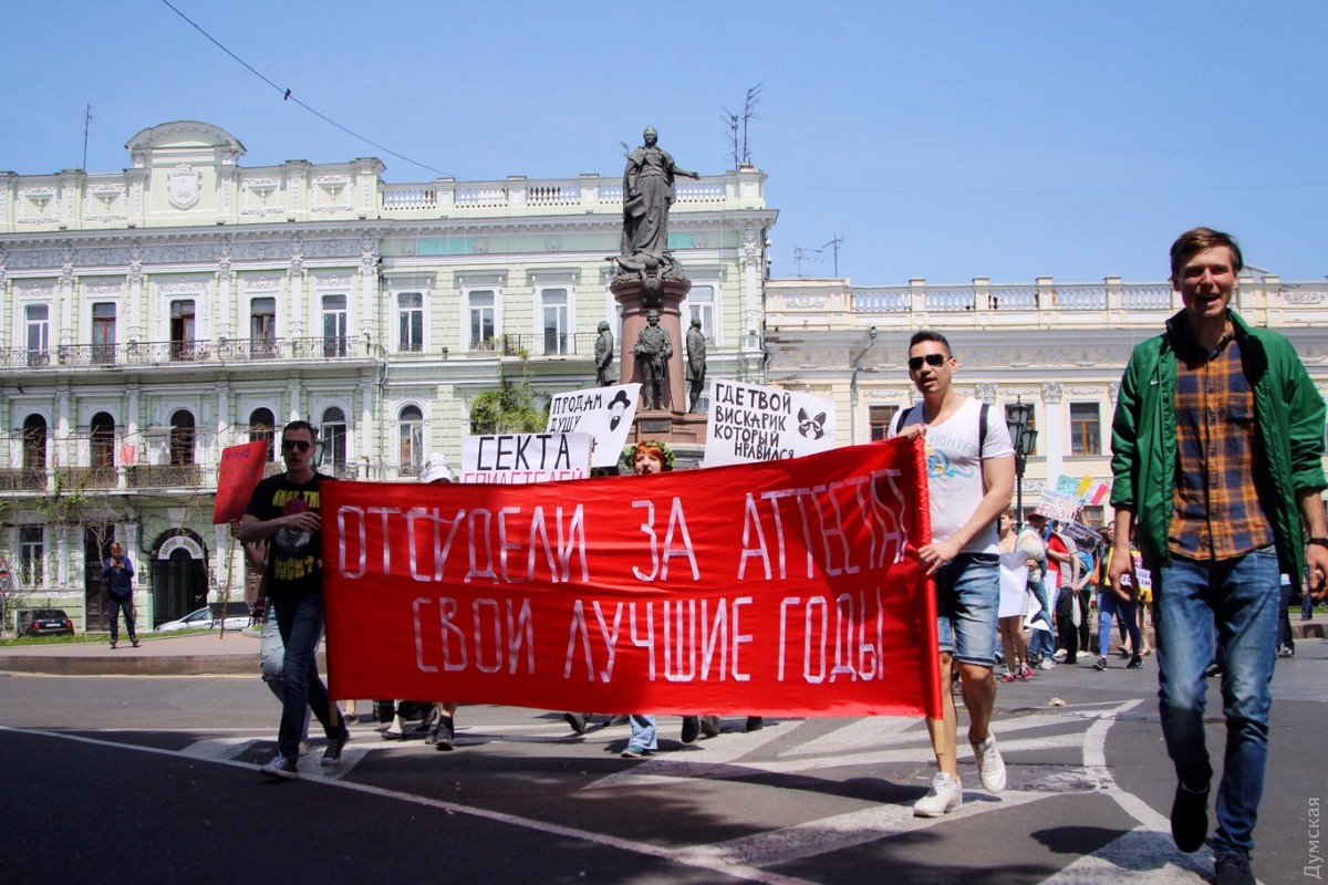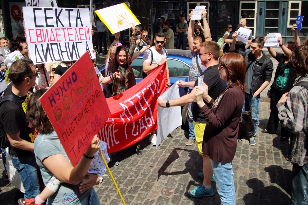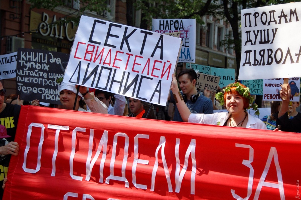 С каждым годом уже ставшая традиционной одесская Монстрация привлекает все больше сторонников абсурдных лозунгов и любителей двусмысленных транспарантов. Сегодня в этом шумном и ярком шествии приняло участие более 50 одесситов, передает корреспондент «Думской». Участники веселого марша, скандируя бессмысленные кричалки вроде «Молоко, творог, сметана» и «Уважайте чувства ворующих», прошли от Соборной площади по Дерибасовской к Приморскому бульвару и обратно. Некоторые участники были в костюмах. Свидетели Диониса были одеты в халаты, а всю процессию сопровождал белый человек-единорог. Акция прошла весело и красочно, на радость одесситам и гостям города, оказавшимся в этот момент в центре. Автор — Александр Гиманов СМЕРТЬ РОСІЙСЬКИМ ОКУПАНТАМ! Помітили помилку? Виділяйте слова з помилкою та натискайте control-enter |