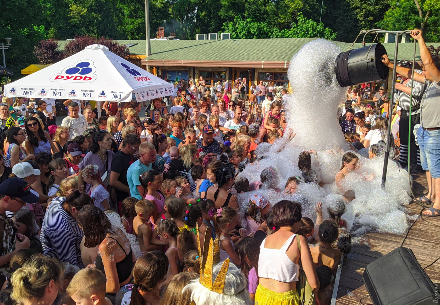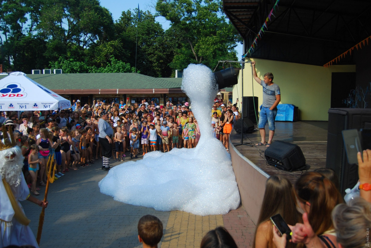 День Нептуна и «праздник воды» отмечают в эти выходные в парке Горького. Мероприятие, ориентированное в первую очередь на детей, собрало несколько сотен любителей мокрых развлечений самых разных возрастов. Гвоздем программы стала пенная вечеринка. Гостей приглашали приходить сразу в купальниках. Помимо этого, организовали конкурсы, викторины, мастер-классы и розыгрыши призов. Наконец, после благословения царя всех морей Нептуна гости ринулись к сцене, чтобы окунуться в праздник с головой, причем в самом прямом смысле. Находчивые родители брали своих чад на руки, и это позволило им участвовать в веселье вместе с детьми. В конце концов, кто бы не хотел исполнить мечту детства и принять душ из миллиона мыльных пузырей, да еще и на жаре? Радостные возгласы и визги удовольствия наполнили окрестности парка — мероприятие вызвало море восторга у всех участников, в том числе нашего подводного корреспондента, который снимал все происходящее буквально изнутри. День Нептуна в парке Горького продолжится в воскресенье, а завершит праздник выступление участника «Х-Фактора» Дениса Рудого. Автор — Анастасия Диброва СМЕРТЬ РОСІЙСЬКИМ ОКУПАНТАМ! Помітили помилку? Виділяйте слова з помилкою та натискайте control-enter |