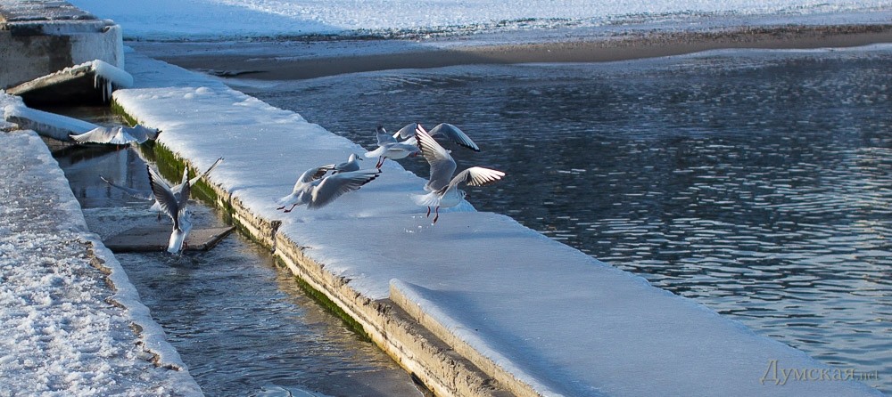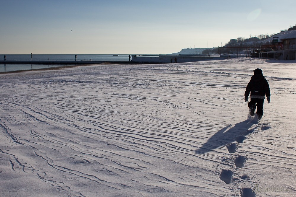 Снег и море: одесское побережье в первый день Нового года