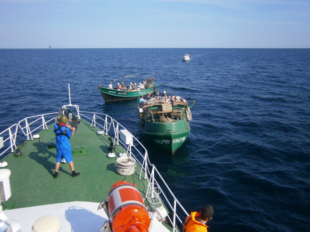 Сотрудники Одесского отряда морской охраны задержали сразу пять плавсредств, нарушивших государственную границу Украины и осуществлявших вылов рыбы в исключительной экономической зоне. Как сообщает Южное региональное управление Госпогранслужбы, на расстоянии 18 морских миль от берега в районе Днестровской банки пограничники обнаружили и остановили три баркаса и две моторные лодки. «Все плавсредства имели украинскую регистрацию и вышли из Ильичевского порта, оформлялись для любительской рыбалки в пределах территории Украины. В результате проверки выяснилось, что квоты любительского лова существенно превышен, а среди 47 рыбаков — пять человек не имели при себе документов, удостоверяющих личность», — говорится в сообщении. На берегу капитанов рыболовецких судов привлекли к административной ответственности за нарушение пограничного режима и государственной границы. «О нарушении правил рыболовства был проинформирован территориальный отдел рыбинспекции, специалисты которого составили шесть протоколов об административных правонарушениях, наложили штрафы на сумму около 8 тыс. гривен и изъяли 30 кг избыточного вылова», — добавили в Госпогранслужбе. СМЕРТЬ РОСІЙСЬКИМ ОКУПАНТАМ! Помітили помилку? Виділяйте слова з помилкою та натискайте control-enter |