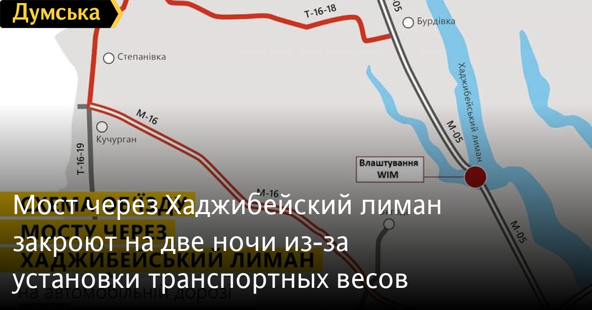 Из-за работ по обустройству системы по контролю веса автомобилей в движении Weight-in-Motion (WIM) на мосту через Хаджибейский лиман будет закрыто движение автотранспорта в течение двух ночей.