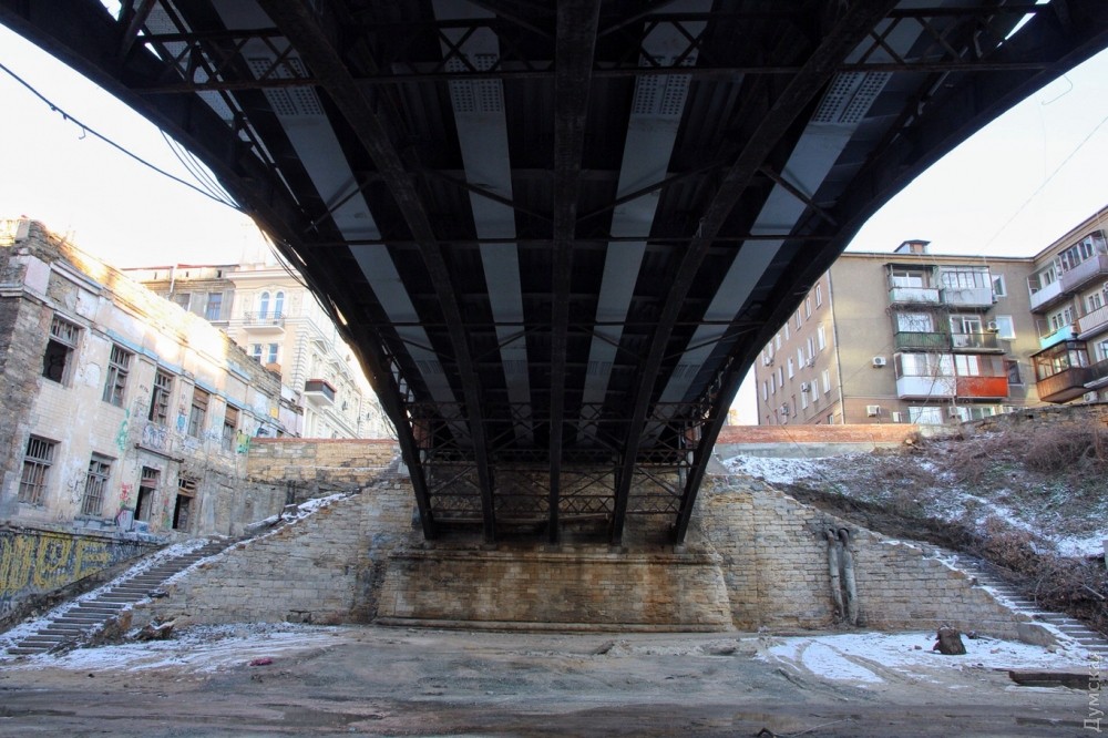 Перила черного цвета этого моста смотрелись на много лучше, чем желто-красные бог невесть, что, а не перила. К тому же, на перилах по центру с обеих сторон был первый герб Одессы.