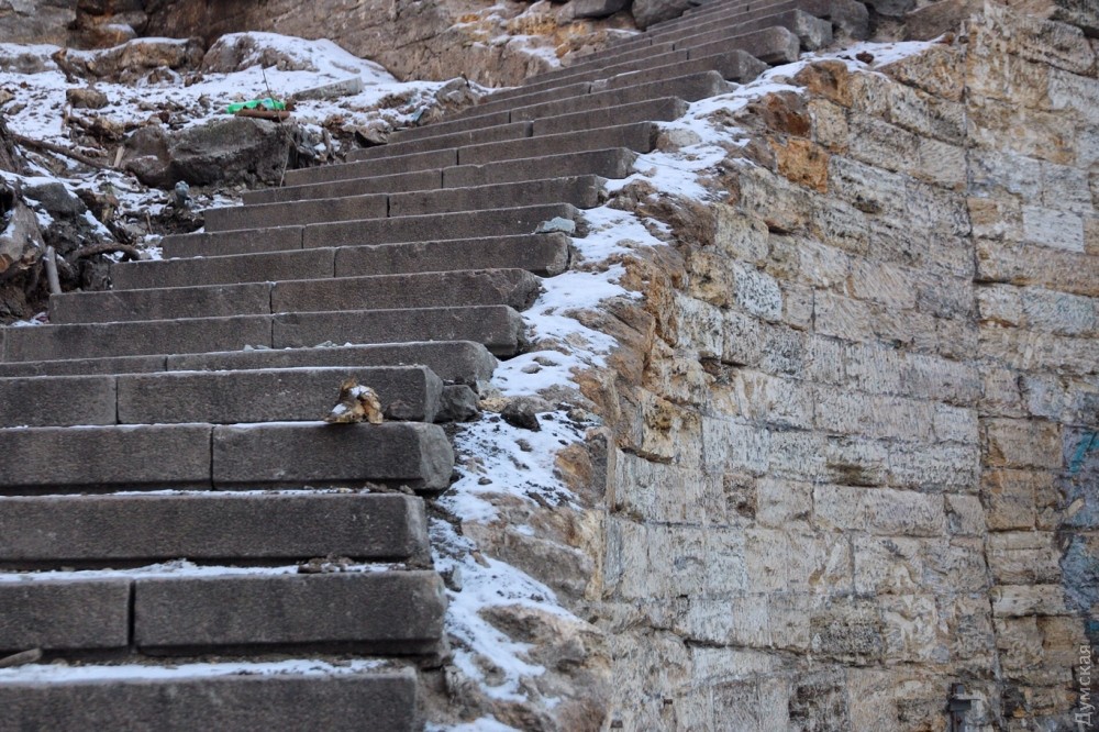 Вместе с тем, как зафиксировал наш корреспондент,ремонтные работы далеки от завершения. Пешеходные спуски все еще закрыты забором, а сами лестницы небезопасны — на них отсутствует ограждение.