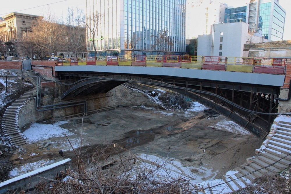 Аутентичные перила будут ставить весной. Первоначально хотели их восстанавливать во Франции, но оказалось слишком дорого. Изготавливают/реставрируют где-то в Броварах. Так мне прораб рассказал. Делали мост очень тщательно, работали и в выходные и в праздники, часто даже по ночам (мост у меня прямо под окнами, наблюдал от нечего делать). Склоны и примостовую территорию будут облагораживать весной. Спилили старые, сухие деревья, парочку нормальных оставили, будет газон, наверное. Работы еще очень много.