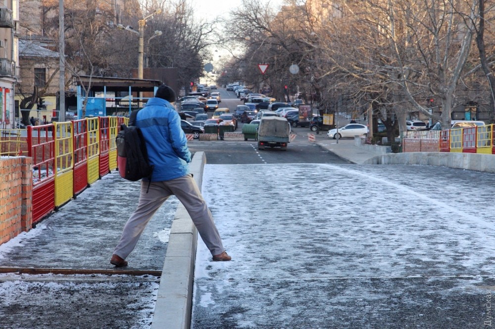 Зима вносит коррективы в строительные процессы. Продолжат весной. Правильное решение разгрузить город, а спуски и перила можно будет весной установить не перекрывая движение по мосту.