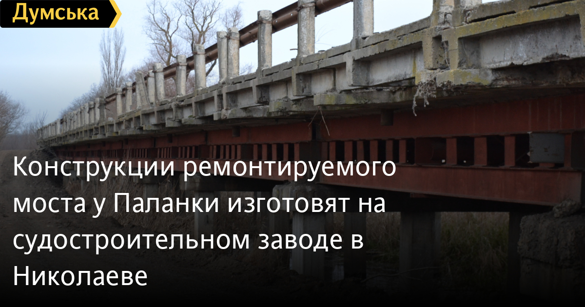 Конструкции ремонтируемого моста у Паланки изготовят на судостроительном заводе в НиколаевеЧерноморский судостроительный завод, что в городе Николаев, получил заказ на металлоконструкции для моста на трассе «Одесса-Рени», который ремонтируется с прошлого года. «Компания заключила контракт на изготовление 400 тонн металлоконструкций с генеральным подрядчиком строительства автомобильного моста на трассе «Одесса-Рени», — сообщает пресс-служба холдинга Smart Maritime Group, который объединяет Николаевскую и Херсонскую судостроительные верфи. Заказ планируется выполнить до конца июня. Кроме того, николаевский завод изготовит два металлических барбета для кранового хозяйства Ильичевского судоремонтного завода. Напомним, мост возле Паланки закрыли на ремонт в декабре. Сейчас поток транспорта направлен через Белгород-Днестровский. Чтобы разгрузить райцентр, в апреле на территории Молдовы началось строительство временной дороги в объезд Паланки. Ее обещали построить к 1 мая, но об открытии ОГА пока не сообщает.