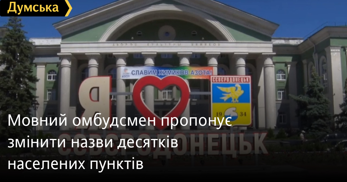 Про необхідність зміни назв деяких населених пунктів України заявив Уповноважений із захисту державної мови Тарас Кремінь. Як повідомляє прес-служба мовного омбудсмена, відповідне звернення направлено до керівників низки органів місцевого самоврядування. Зазначається, що відповідно до частини першої статті 41 мовного закону географічні назви, а також назви скверів, бульварів, вулиць, провулків, узвозів, проїздів, проспектів, площ, майданів, набережних, мостів та інших об’єктів топоніміки населених пунктів виконуються державною мовою. «До мене надходять численні звернення та повідомлення від громадян, які скаржаться на те, що назви низки населених пунктів носять російськомовний характер та не відповідають правилам і нормам українського правопису, — зазначив Кремінь. — Це такі населені пункти, як Арбузинка, Сєвєродонецьк, Южноукраїнськ, Южне, Спокойствіє, Надєждівка, Переводчикове, Луч, Первомайське, Первомайськ та багато інших. Багато з них мали прекрасні історичні назви, як Сіверський Донець, Гарбузинка чи Богопіль та були несправедливо перейменовані за часів комуністичної влади». На думку мовного омбудсмена, приведення географічних назв у відповідність до правопису, стандартів державної мови та вимог закону сприятиме забезпеченню функціонування державної мови як інструмента об’єднання українського суспільства, засобу зміцнення державної єдності та територіальної цілісності України. СМЕРТЬ РОССИЙСКИМ ОККУПАНТАМ! Заметили ошибку? Выделяйте слова с ошибкой и нажимайте control-enter |