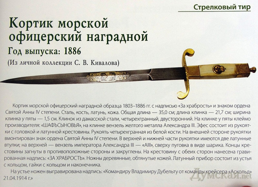 Сокровища одесских юристов: в музее оружия — подарки первых лиц и любимые «стволы» бандитов«Думская» продолжает цикл репортажей о малоизвестных музеях Одессы. На этот раз ваш корреспондент побывал в собрании оружия при одесской юридической академии. Здесь хранятся полторы сотни огнестрельных экспонатов, в том числе раритетные. Несмотря на то, что музей был открыт еще три года назад, к 65-летию Победы, о его существовании не каждый студент вуза знает, а уж остальные одесситы и подавно пребывают в неведении. «Секретный» объект расположился в подвале одного из корпусов Юракадемии. Он спрятан за железной решеткой и обвешан десятками камер видеонаблюдения. Впрочем, все представленное здесь оружие не является действующим. Это либо модели, либо учебные «стволы», либо специально приведенные в негодность боевые образцы. Иначе открытое хранение было бы невозможным. Мир стали, пороха и изящных форм нам показал полковник в отставке, участник Афганской войны, а ныне заведующий стрелковым тиром при академии Николай Воронков. Он рассказал, что музейная экспозиция используется в качестве наглядного пособия для студентов института прокуратуры и следствия. Будущие служители Фемиды обязаны знать, как выглядит то или иное оружие, а при необходимости — уметь разобрать его. Стрелять, кстати, судьи и прокуроры тоже учатся — в жизни всякое бывает. Первое впечатление от экспозиционного зала было странным – из-за обилия зеркал показалось, что раньше в нем занимались танцами. Однако, как выяснилось, хореографией тут никогда и не пахло, а зеркала развесили совсем с другой целью — чтобы визуально расширить узенькое замкнутое пространство. Кстати, неплохо придумали — создается иллюзия, что в музее не 140, а раз в десять больше экспонатов. Формироваться собрание начало еще в 1996-м году. В то время нынешняя национальная академия была юридическим институтом при Одесском государственном университете имени Мечникова. Когда институт откололся от ОГУ, наглядные пособия перекочевали вместе с ним в новый академгородок на Пионерской. С годами экспозиция серьезно пополнилась, и в 2009-м году руководство учебного заведения решило открыть музей. Значительную часть собрания составляют предметы из личной коллекции президента ОНЮА Сергея Кивалова — страстного охотника и любителя оружия. Кое-что вузу перепало после расформирования института сухопутных войск — тогда учебные образцы распродавались за бесценок. Современное спортивное оружие академия официально закупает в специализированных магазинах через кафедру физвоспитания: его используют на стрелковых соревнованиях. Являясь боевым, такое оружие хранится под замком на опечатанном складе. Много в экспозиции подарков от высокопоставленных лиц и разных ведомств.Так, один из министров обороны передал вузу американский «Кольт», а горуправление внутренних дел - конфискованный у каких-то бандитов «Браунинг». «Вообще, все конфискованное оружие уничтожается в присутствии специальной комиссии, — рассказывает экскурсовод. — Раньше переплавляли в доменной печи на заводе «Центролит», сейчас — в литейном цехе «Красной гвардии». Бывал в зеркальном зале музея и действующий президент Украины – он живо интересовался коллекцией старинного оружия, но подарков музею не делал. «Янукович увлекается коллекциониров