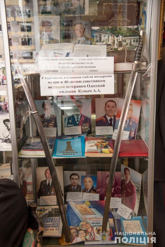 Так, в экспозицию вошли 60 наград известного служебного пса - овчарки по кличке Рим, который в свое время взял след более 500 преступников. В музее хранится его чучело. «Награды нам подарил внук кинолога Николая Федорова, с которым в паре работал именитый пес», — отметил Владимир Ковтун. Рассказывая о приобретениях минувшего года, музейщики отметили коллекцию из шестисот фотографий известных на всю тогдашнюю УССР выпускников Одесской специальной средней школы милиции (ныне — Одесского государственного университета внутренних дел). Этот уникальный фотоархив попал в музей из личной коллекции бывшего начальника Суворовского райотдела милиции Георгия Кривчука. Еще среди новинок — материалы об отделении полиции Одессы до 1917 года от ветерана МВД Александра Бабича, новые наработки о начальнике уголовного розыска 1934 года и авторе книги «Золотые россыпи» Иосифе Тумаркине. Всего за год сотрудники музея, расположенного на Еврейской, 14, провели более тысячи экскурсий для тринадцати с половиной тысяч посетителей. Коллекция музея насчитывает более 8 тысяч экспонатов — документы, оружие, униформа, вещдоки — и является одной из крупнейших в Украине. Читайте также Музей милиции: секреты Мишки Япончика и «короля шпионов»