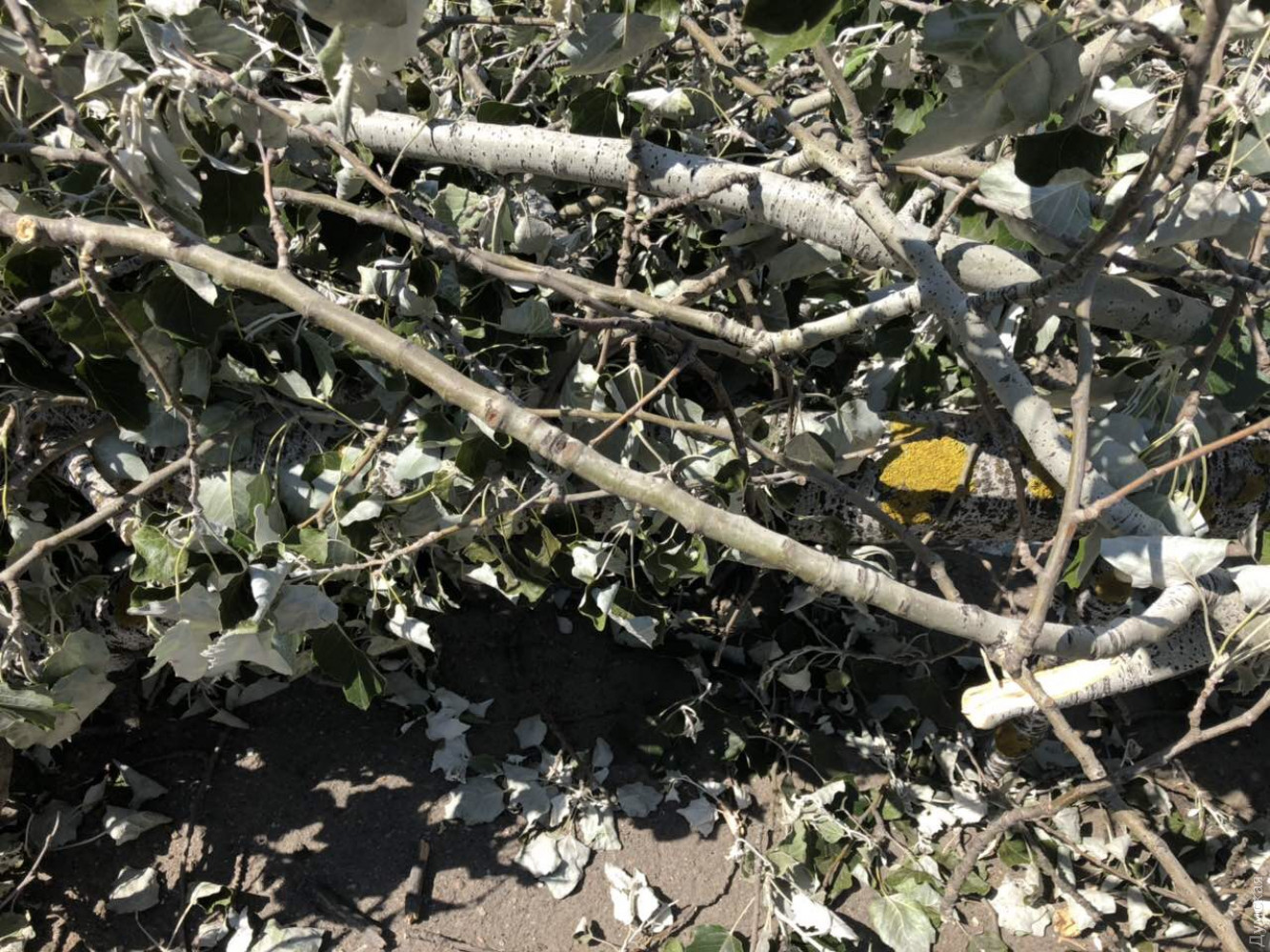 Помните шторм в мае 2013-го? На мою машину упало дерево. Прям под двором. Ущерба на 1200 у.е. по факту ремонта примерно. Дерево адекватное, зеленое, не сухое.
