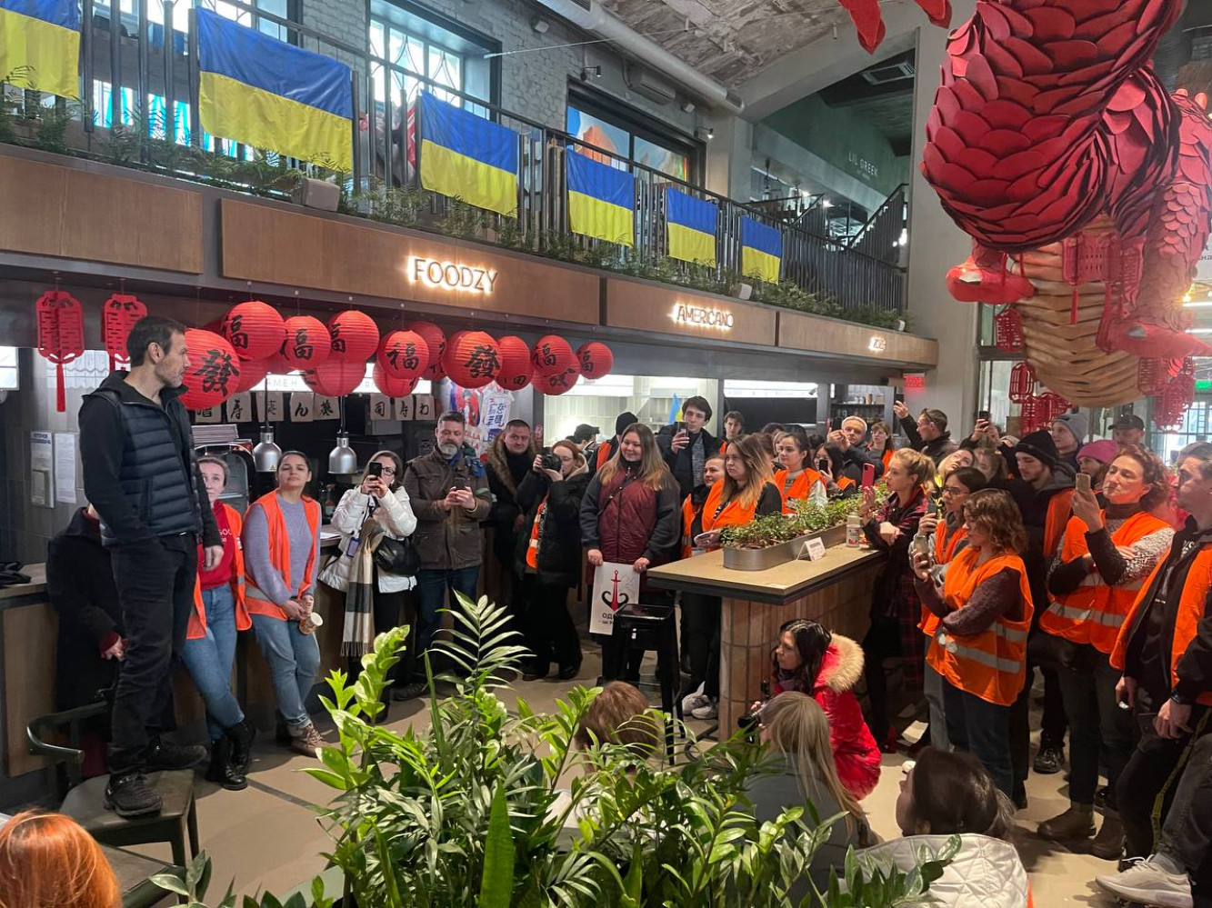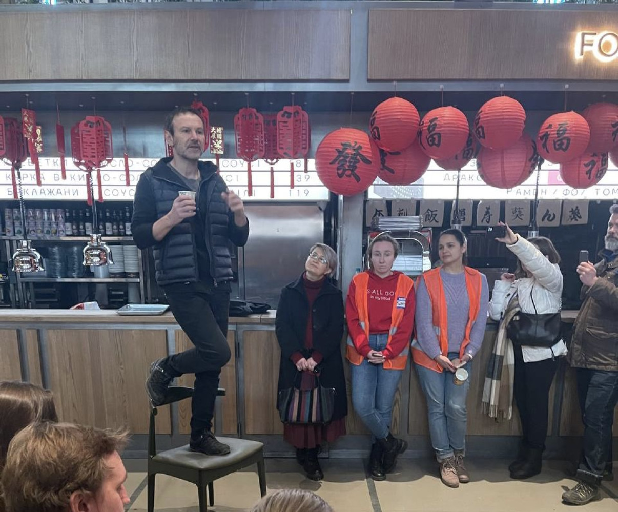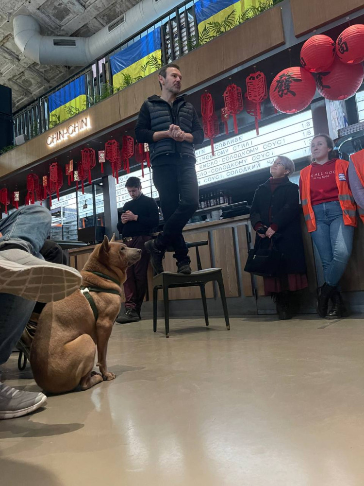 Артист выступил перед одесситами в Гуманитарном волонтерском центре, который с начала войны функционирует на базе «Городского рынка еды» на Ришельевской.