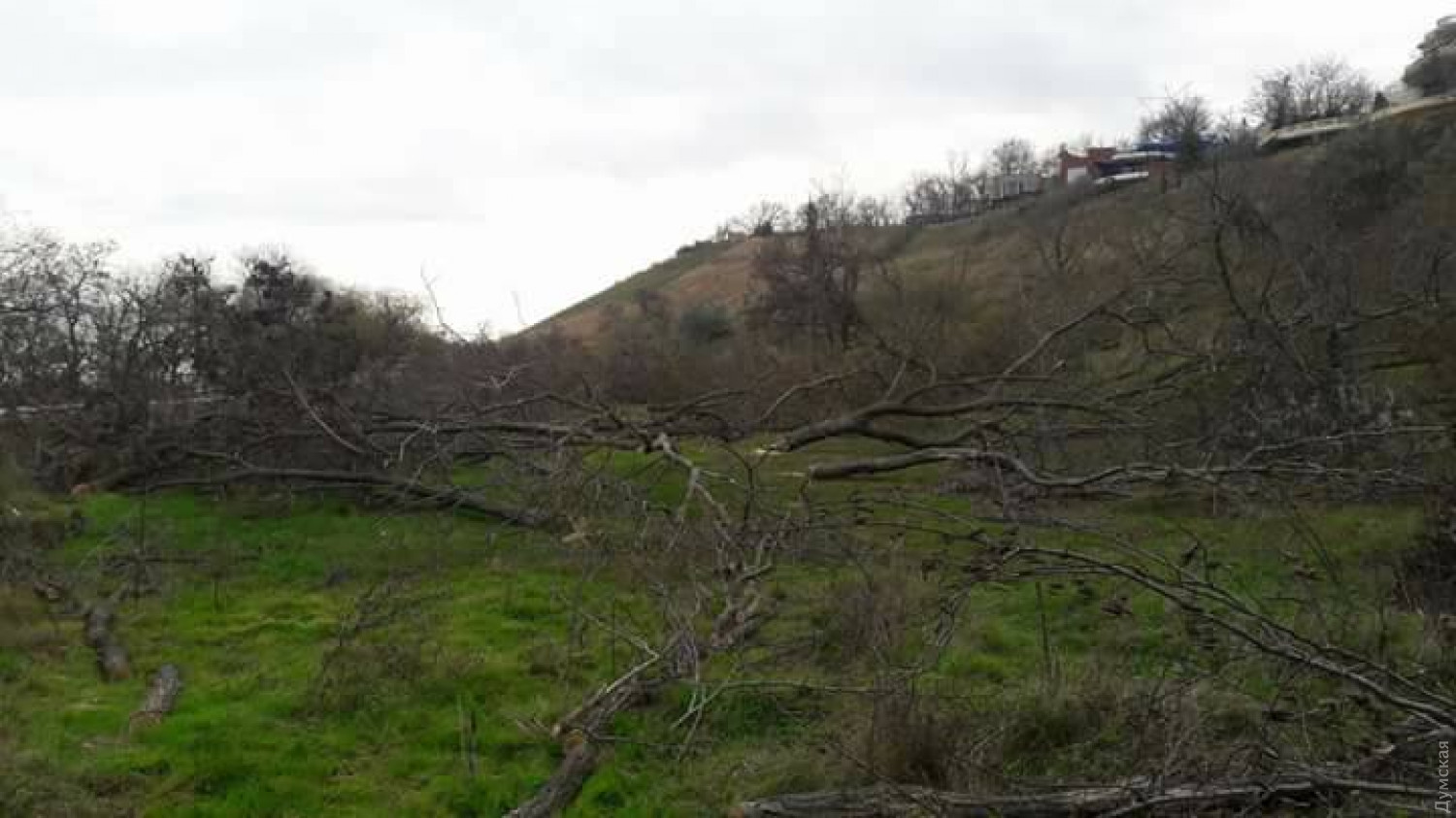 «Берегоукрепители» спилили больше 50 деревьев у подножия склона на 13-й Фонтана