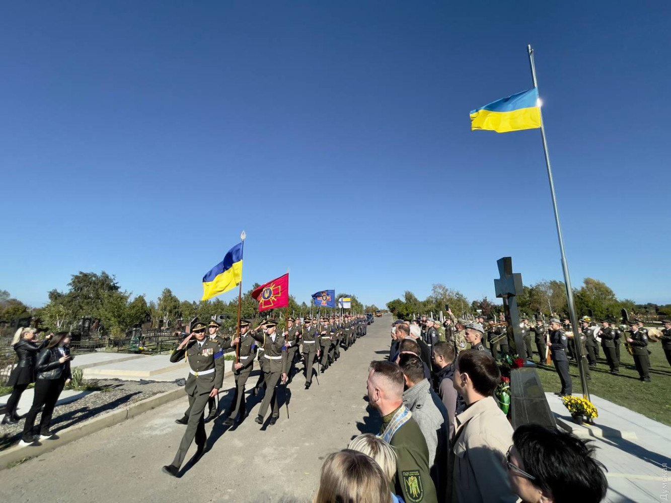 На Алеї Героїв Західного кладовища Одеси відкрили Козацький Хрест (фото, відео)Символ козацтва, запорожців, українського лицарства і війська — Козацький Хрест, урочисто відкрили на одному з цвинтарів Одеси. На честь Дня захисників та захисниць України військові, представники міської та обласної влади поклали квіти до пам'ятного знаку. Як повідомили в мерії, на Західному кладовищі є окрема ділянка для поховання військових. Тут вже є 8-ми метровий флагшток із державним прапором України, встановлений на День Незалежності. Козацький хрест встановлений поруч з ним. «Ще здавна є традиція встановлювати козацькі хрести на похованнях загиблих за Україну. Тепер такий знак є і в Одесі», — зазначили в мєрії. СМЕРТЬ РОСІЙСЬКИМ ОКУПАНТАМ! Помітили помилку? Виділяйте слова з помилкою та натискайте control-enter |