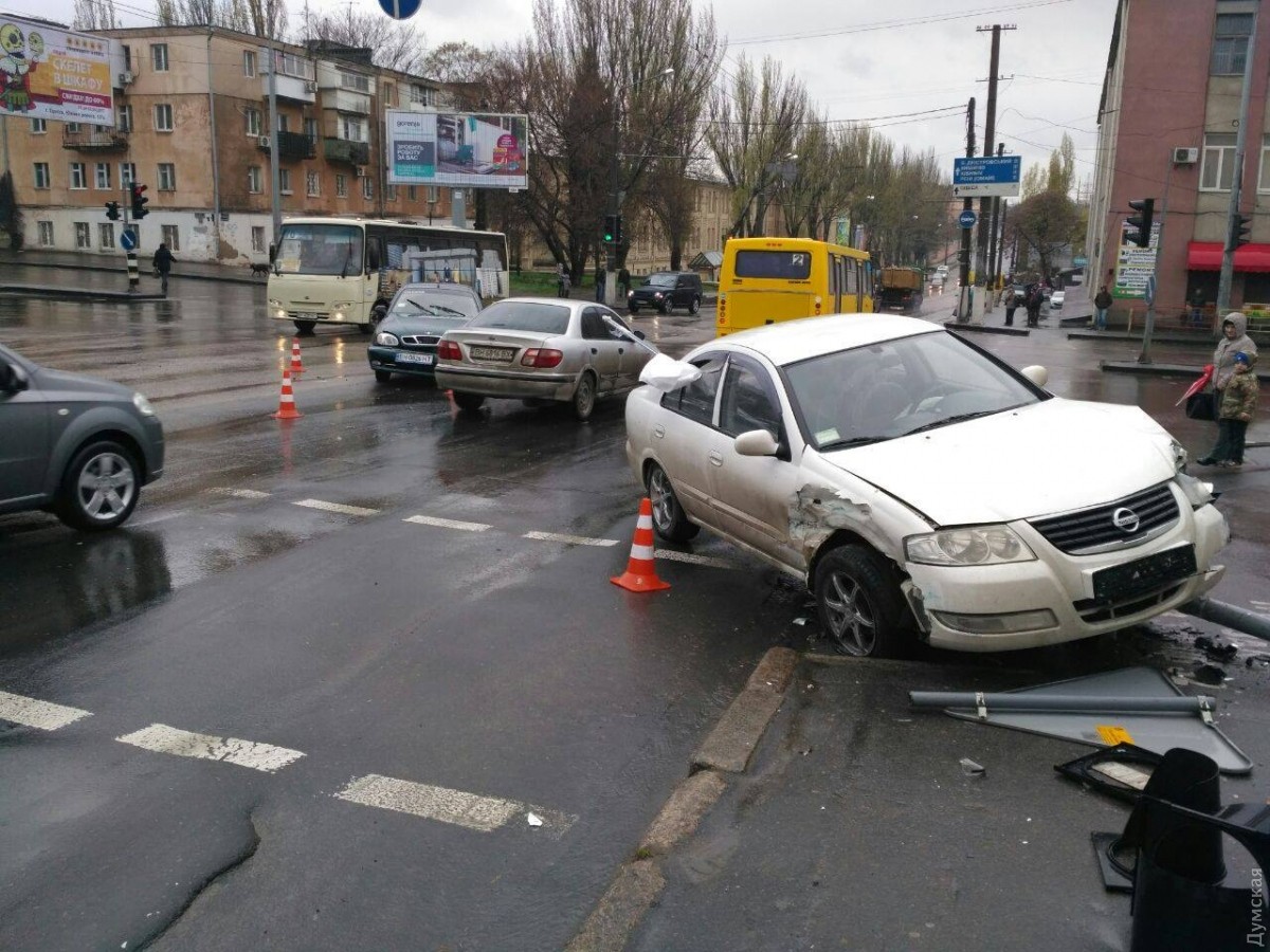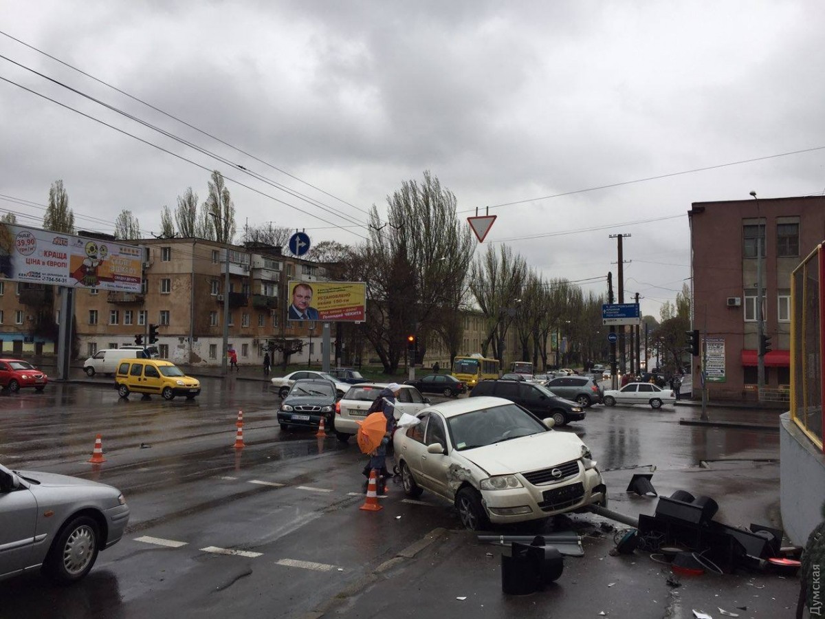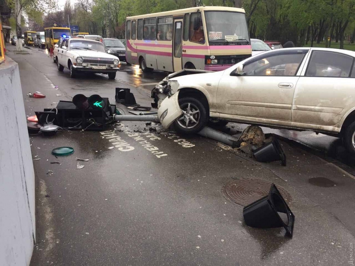 Как сообщили в пресс-службе патрульной полиции, автомобиль «Дэу» совершал поворот налево с правой крайней полосы и на перекрестке столкнулся с автомобилем «Ниссан», который продолжил по инерции движение и совершил наезд на светофор.