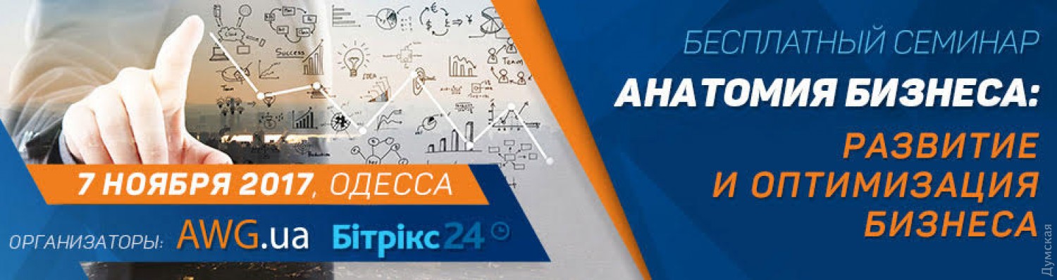 На бесплатном семинаре одесситам расскажут об анатомии бизнеса и навыках эффективного управленца (на правах рекламы)7 ноября в Одессе состоится бесплатный семинар «Анатомия бизнеса», на котором расскажут о развитии и оптимизации предприятия. 9 специалистов по маркетингу, продажам и командообразованию из Netpeak, Битрикс24, AWG, Olshansky&Partners, It Logic, Netocrat Communications, InMarketing, Visotsky Consulting, BusinessForward поделятся своими бизнес-кейсами, набитыми шишками и расскажут о современных инструментах для маркетинга, построении отдела продаж и повышения эффективности команды. Участие бесплатное, но требуется предварительная регистрация. На семинаре будут обсуждать: - 101 предприниматель и их проблема Семинар будет полезен представителям малого и среднего бизнеса, владельцам и собственникам бизнеса, директорам, руководителям, интернет-маркетологам, специалистам по рекламе. Предварительная регистрация по ссылке. Дополнительную информацию о семинаре вы можете получить в компании AWG по телефону + 38 (067) 100-49-07 или по e-mail seminar-bitrix24@awg.ua Бесплатный семинар пройдет 7 ноября с 10:00 — 18:00. Адрес: Одесса, ул. Ришельевская 33, Терминал 42, 4 этаж. СМЕРТЬ РОСІЙСЬКИМ ОКУПАНТАМ! Помітили помилку? Виділяйте слова з помилкою та натискайте control-enter |
