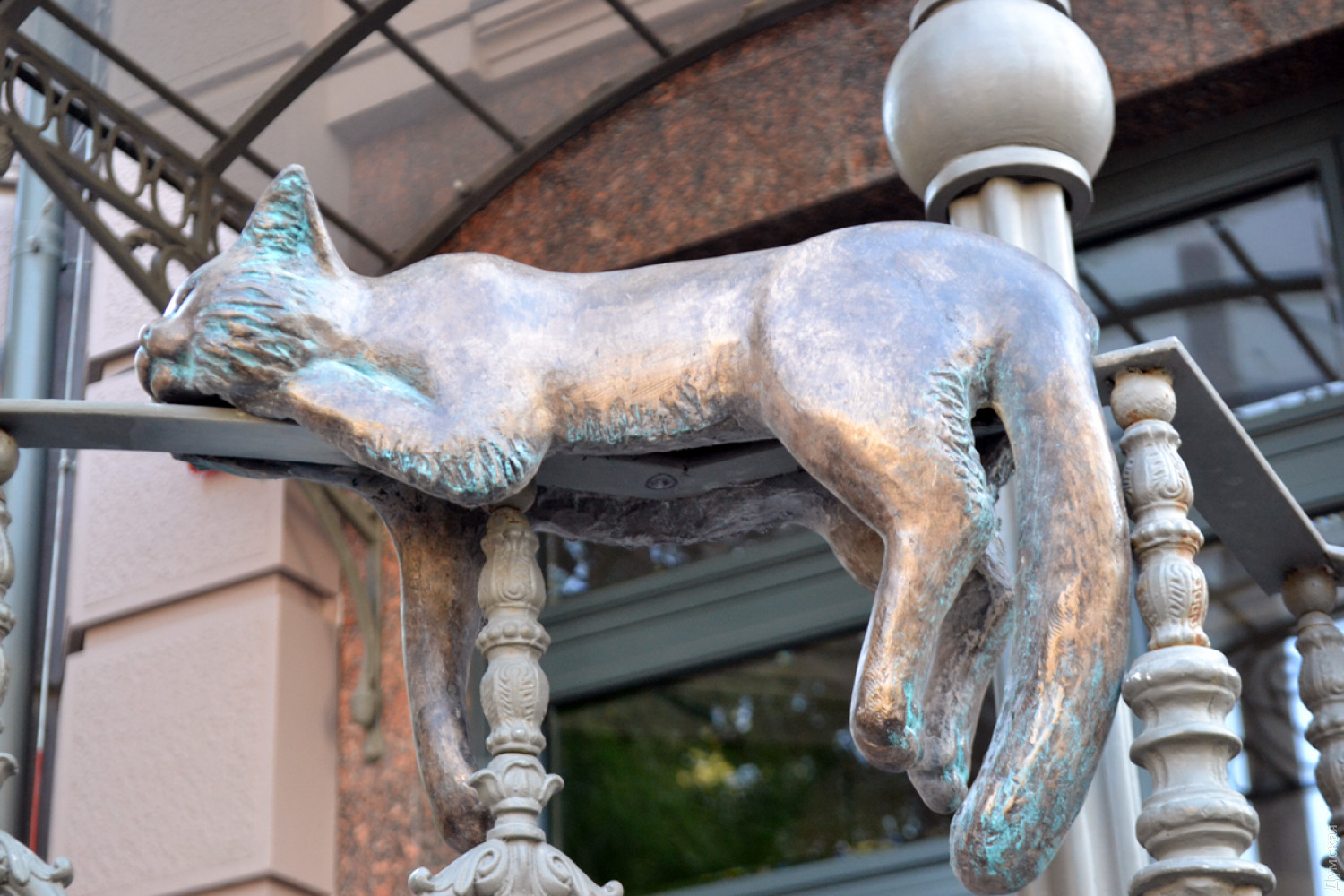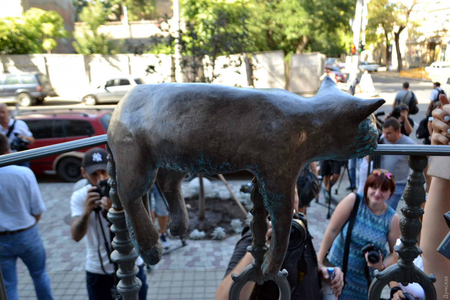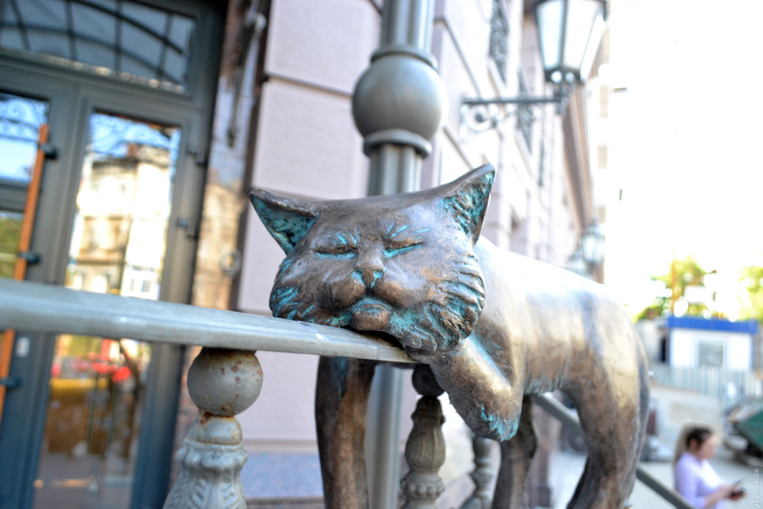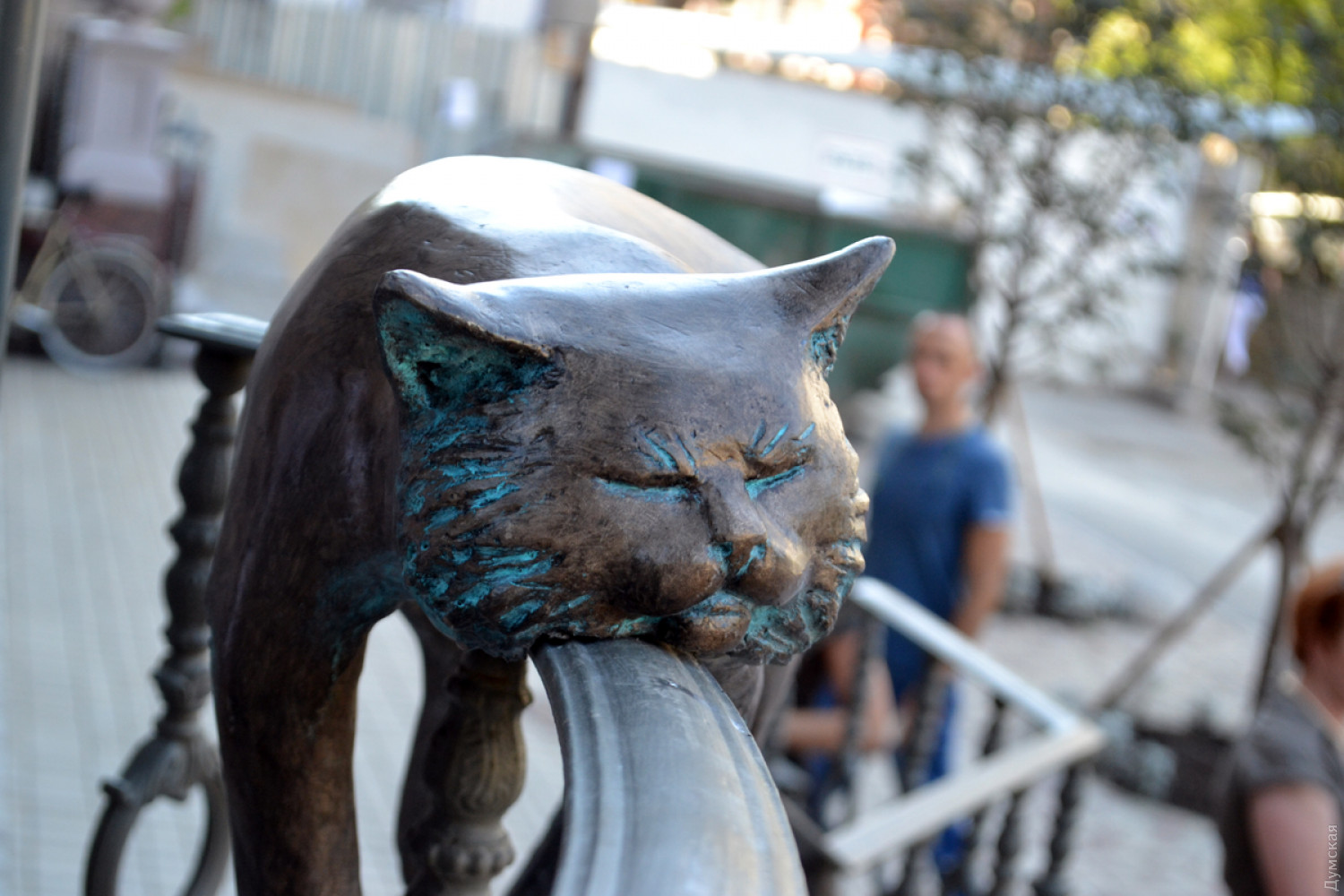 Крыльцо нового дома на углу Большой Арнаутской и Осипова украсила очередная скульптурная композиция, созданная в рамках проекта «Одесские коты». Животное изваяла из полиэфирной смолы известный одесский скульптор Татьяна Штыкало. Это ее пятый кот для проекта. Всего котолюбы установили по городу 11 скульптур хвостатых-полосатых. Двух котов, созданных Татьяной, похитили неизвестные. Сейчас мастер их воссоздает.